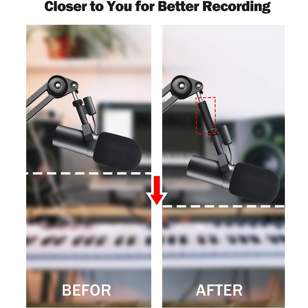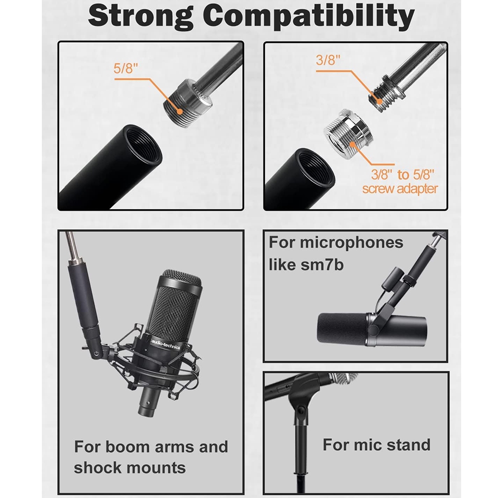 Mic Stand Extension Tube Microphone Extension Pipe Aluminium Alloy Stand Extenders Screw Boom Tubes Microphone Extension Rod for Desk Stand Arm Stand Microphone Stands