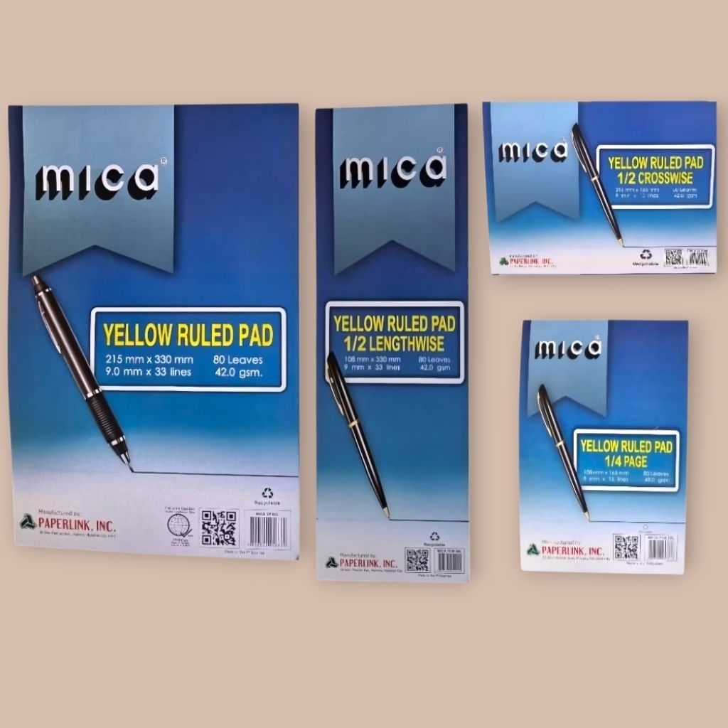 Mica Yellow Ruled Pad- Long Pad, 1/4, Crosswise, Lenghtwise Set ( 4 Pieces)