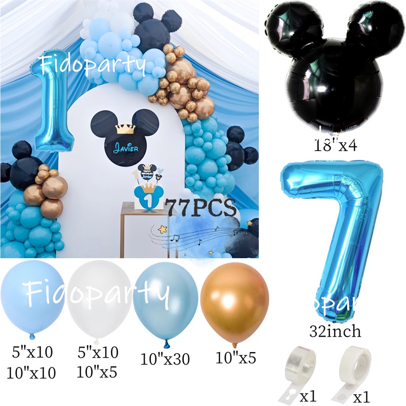Mickey Mouse Balloons Garland Arch Kit 32inch Blue Number Balloon Black Mickey Head Foil Balloon Baby Shower Party Needs