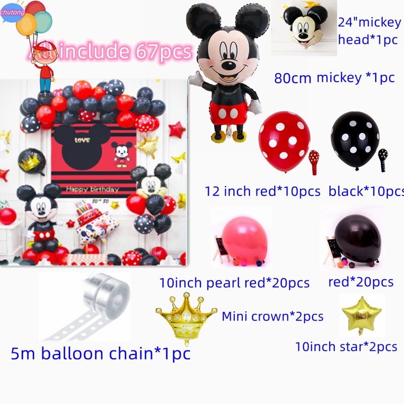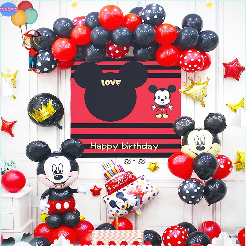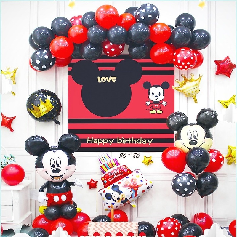 Mickey Mouse Theme Balloons Mickey Foil Balloon Wave Dot Latex Balloon Party Decorations Set Happy Birthday Party Needs