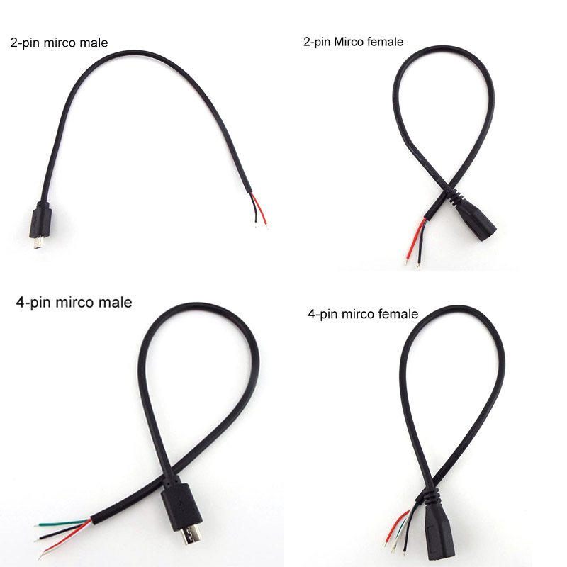 Micro USB 2.0 A Female male Jack charging Connector cable 4 Pin 2 Pin 4 Wires Data Charge Cord DIY for Android interface