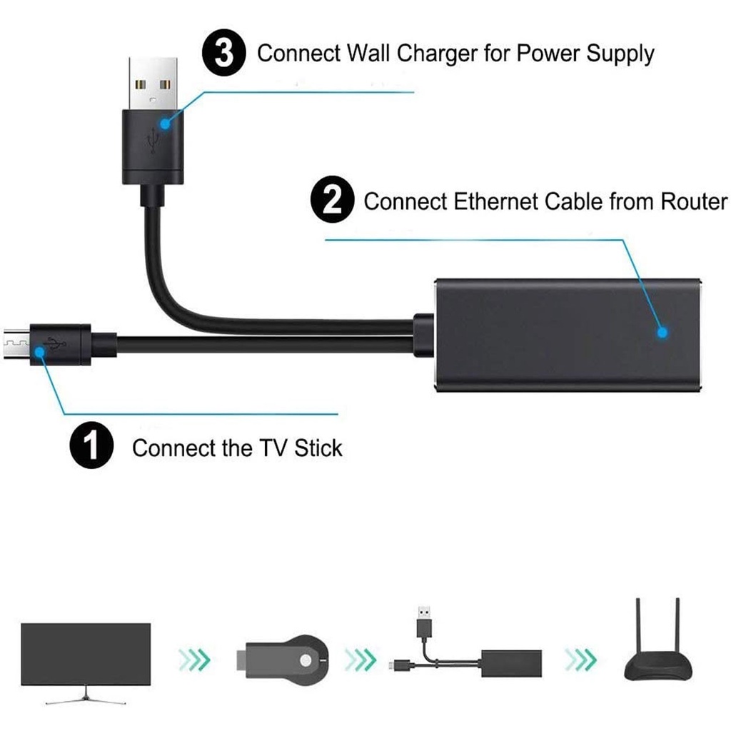 Micro USB A to RJ45 100Mbps Network Adapter with USB A Power Supply Cable