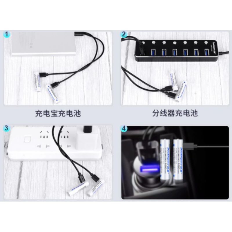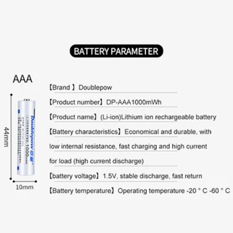 Micro-USB Rechargeable AAA Batteries. 1000mWh