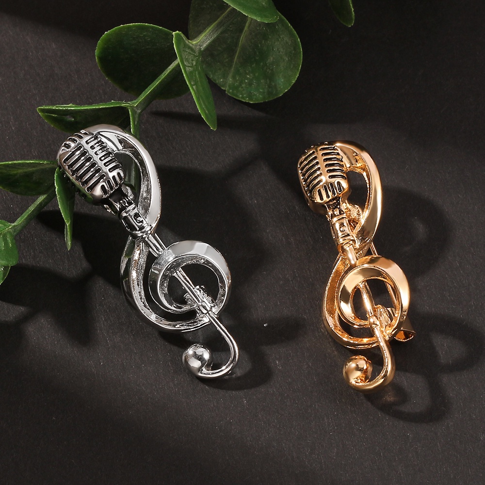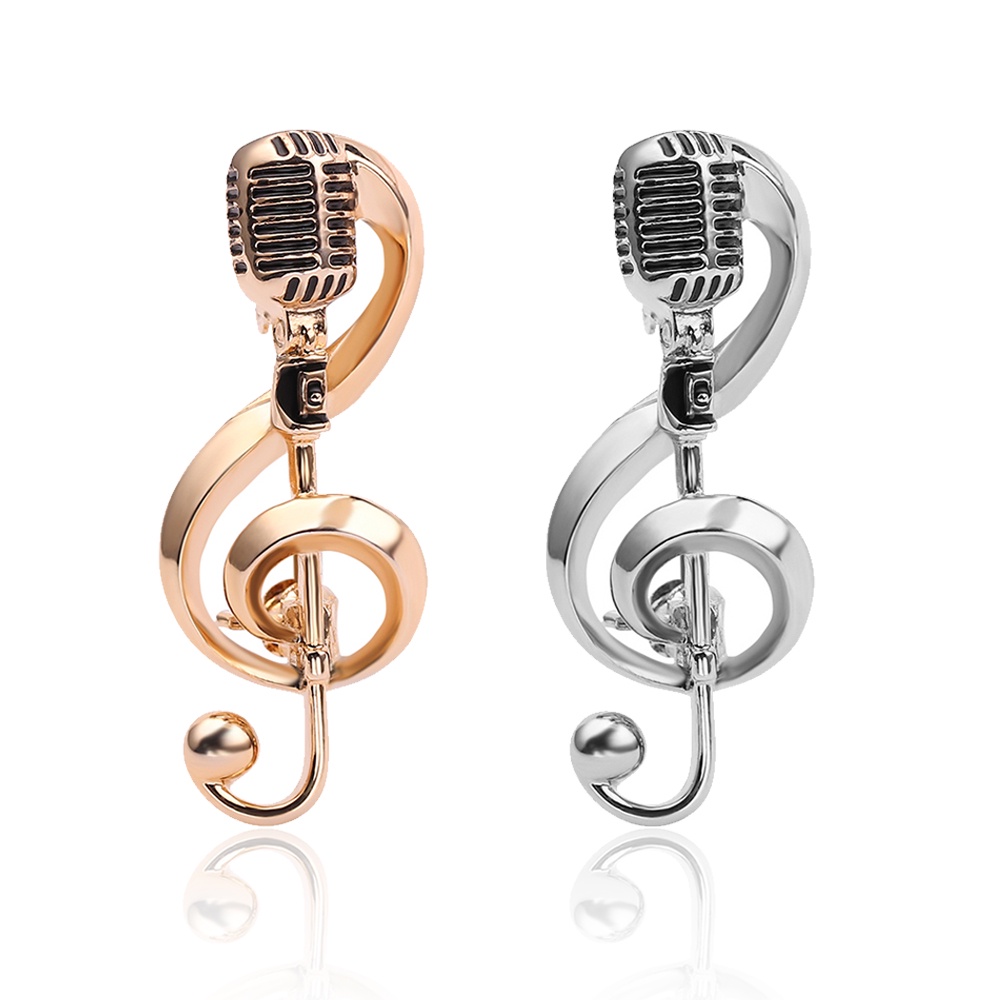 Microphone Music Note Brooches Enamel Pin For Women Men Singer Party Concert Accessories Gift Jewelry
