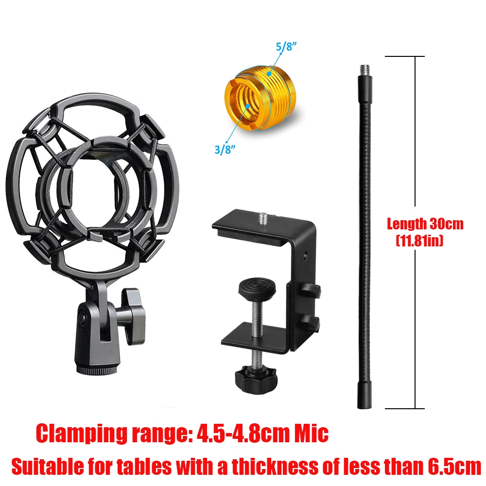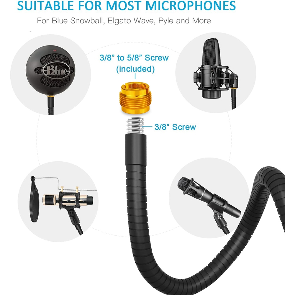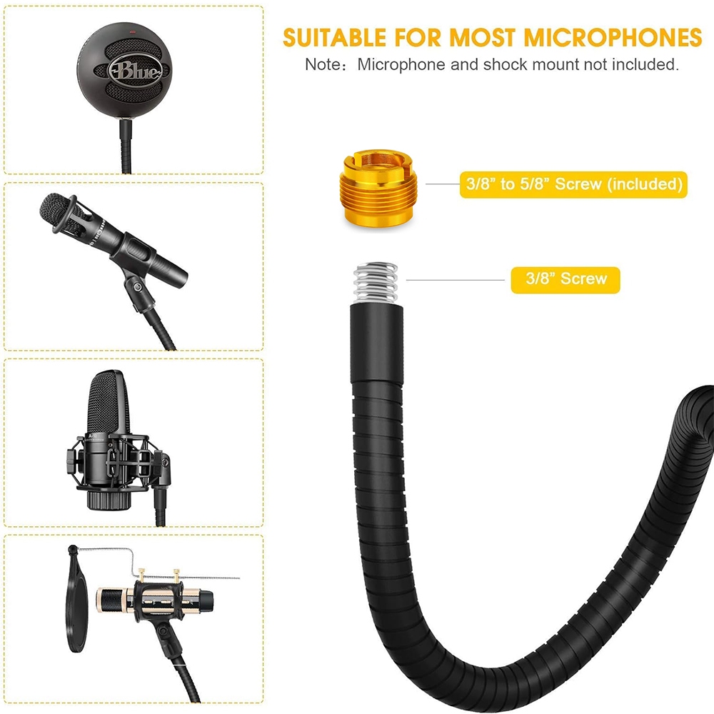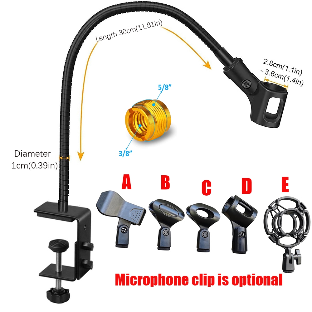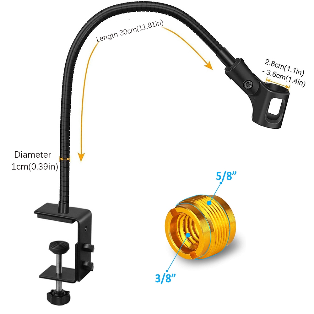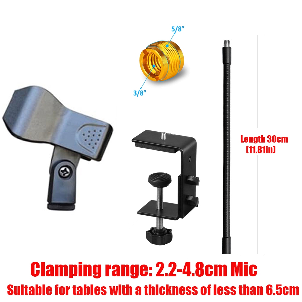 Microphone Stand,30cm Flexible Gooseneck Desktop Mic Stands Holder with Heavy Duty Desk Clamp,3/8" to 5/8" Screw Adapter Include 360 Adjustable Compact Mic Arm