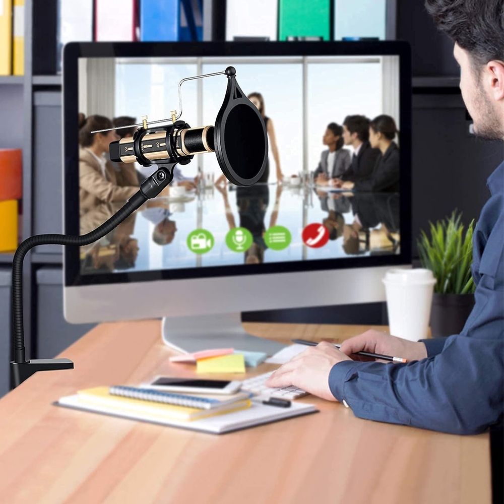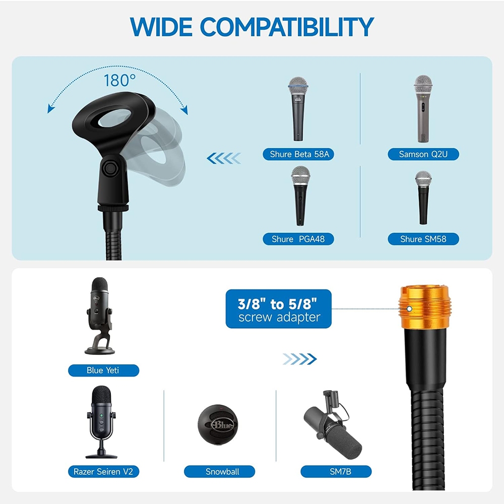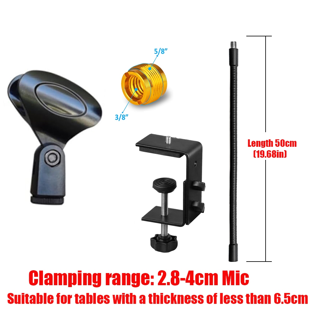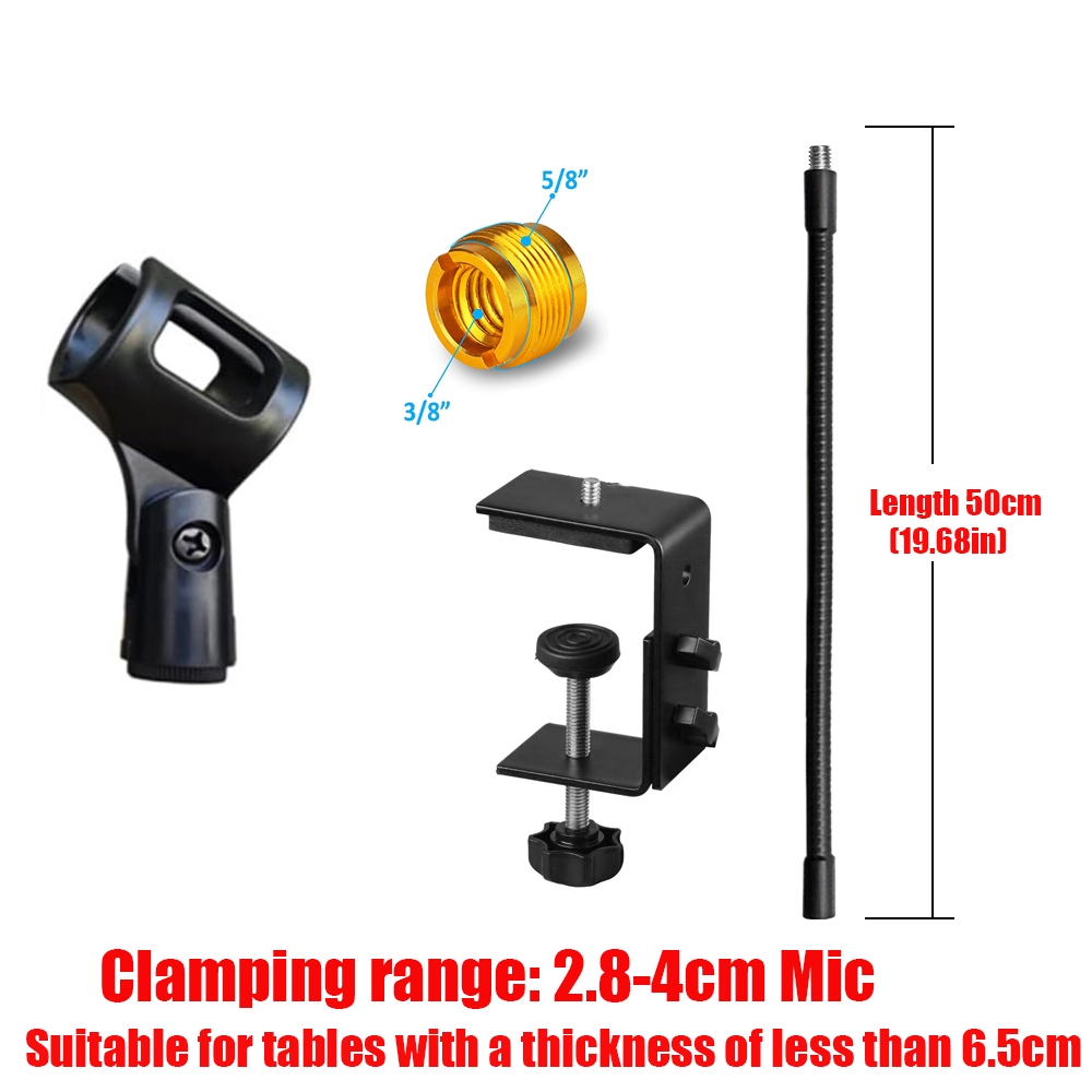 Microphone Stand,50cm/19.68 inches Flexible Gooseneck Desktop Mic Stands Holder with Heavy Duty Desk Clamp,3/8" to 5/8" Screw Adapter Include 360 Adjustable Compact Mic Arm