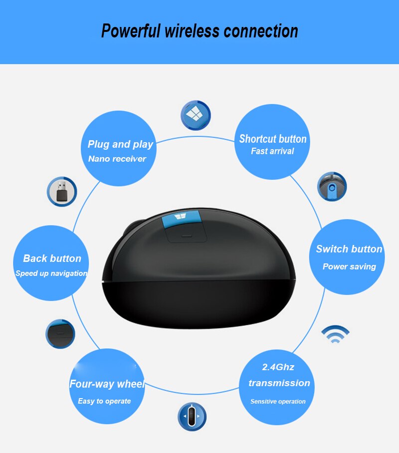 Microsoft Sculpt Ergonomic wireless mouse, ergonomic design, blue shadow technology, plug and play wireless mouse