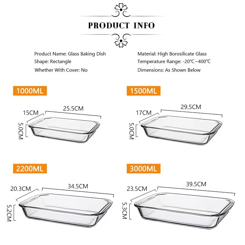 Microwaveable Glass Baking Dish Glass Pan Cooking Dish Rectangular Pan Glass Kitchen Glassware