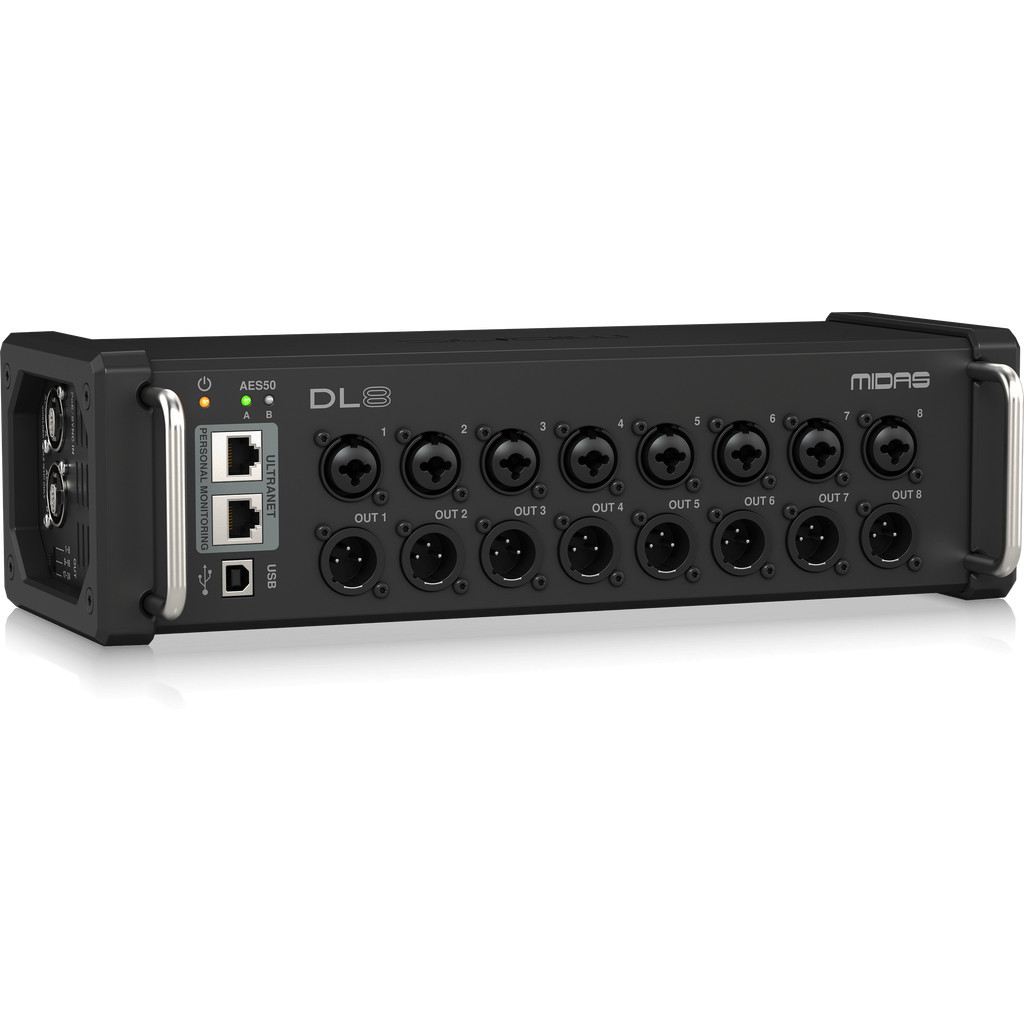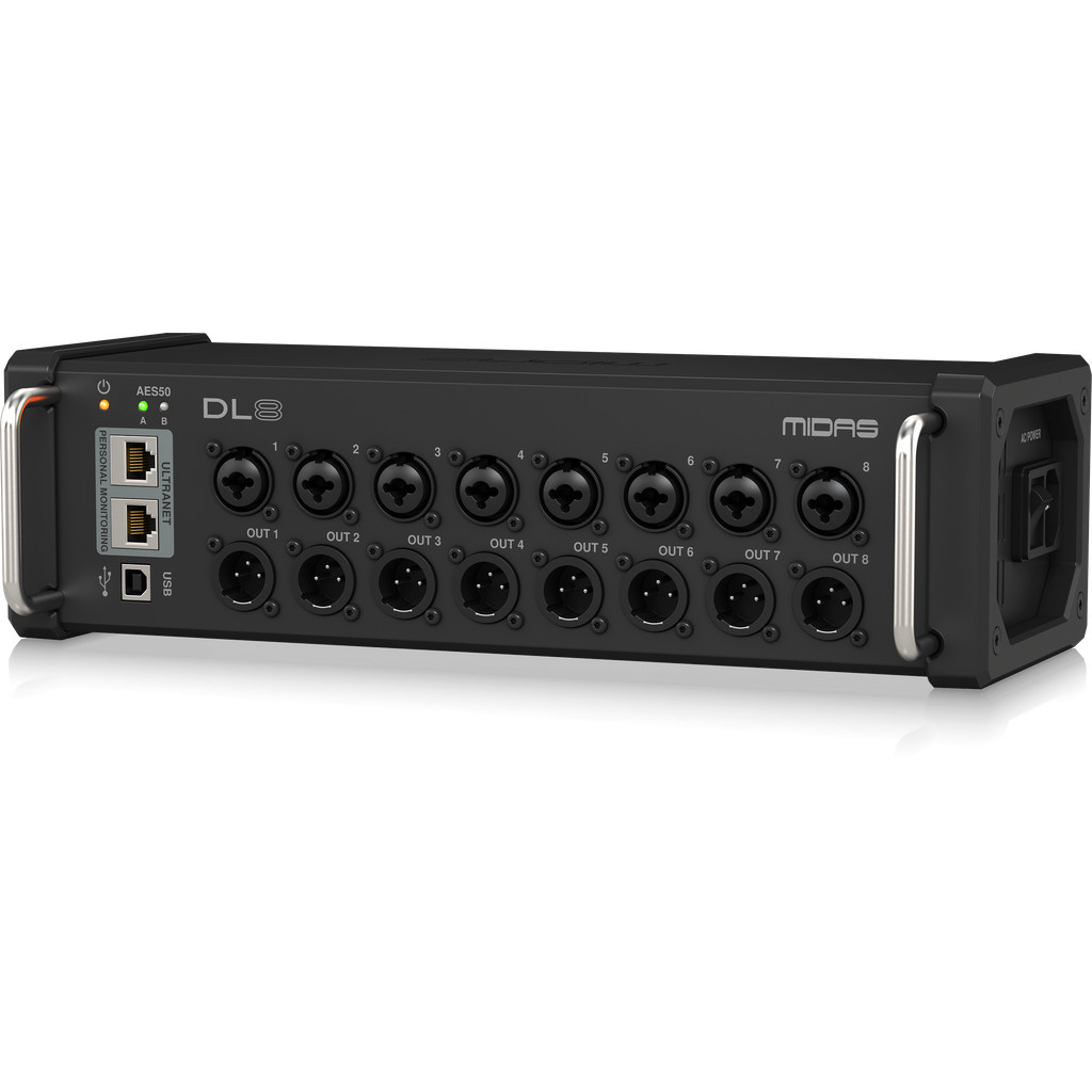 Midas DL8 PoE-Powered 8 Input, 8 Output Stage Box with Midas PRO Microphone Preamplifiers and 2 Powered ULTRANET Monitoring Outputs
