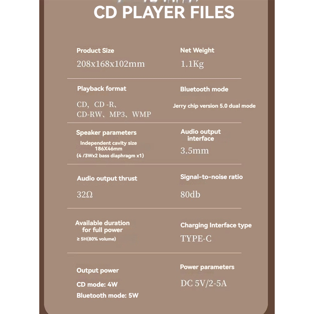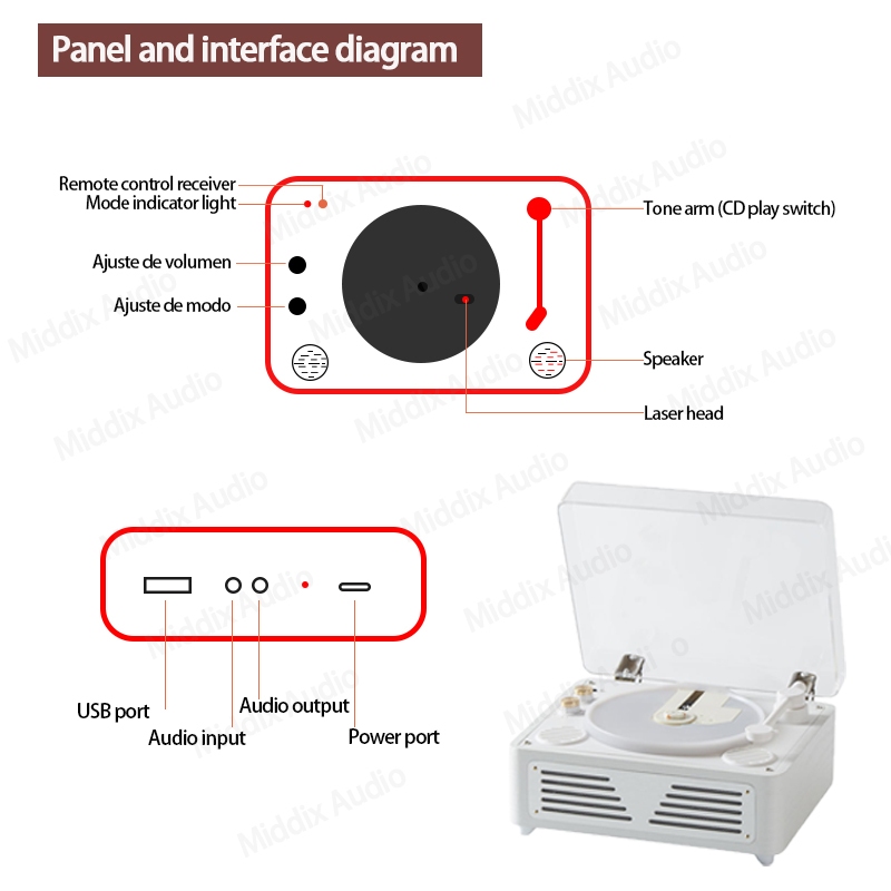 Middix CD Player for kpop albums Portable Retro Bluetooth Speaker Music Player with Built-in battery