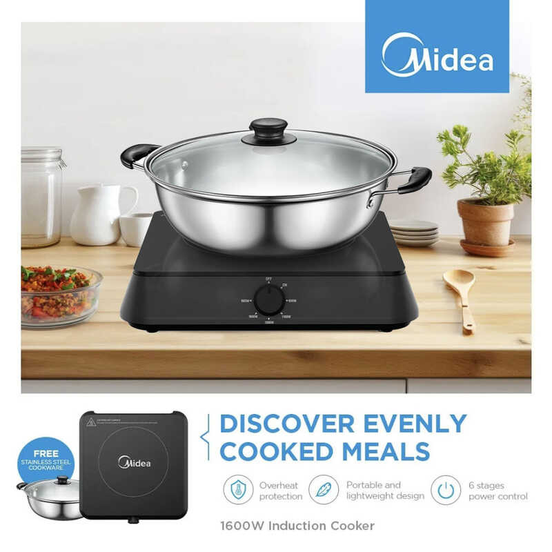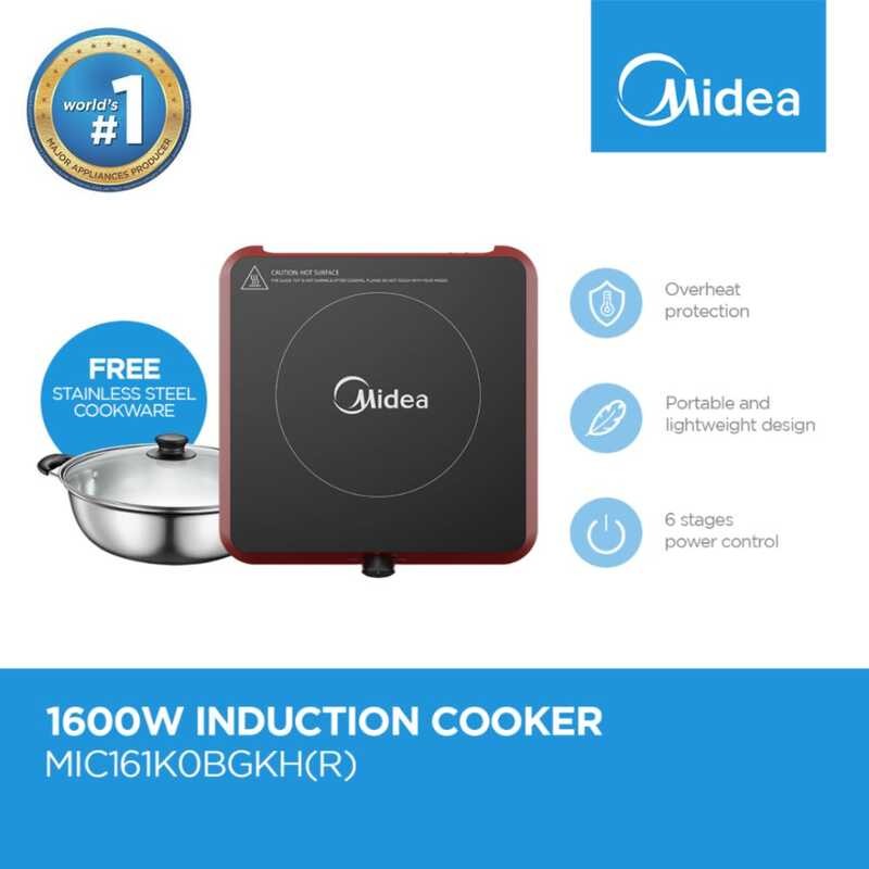 Midea Mechanical Induction Cooker 1600W Black/Red With Free Stainless-Steel Pot Overheat Protection