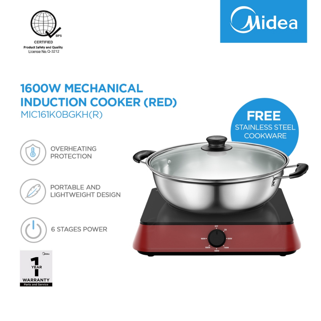 Midea 1600W Black/Red Mechanical Induction Cooker with Free Stainless-Steel Pot