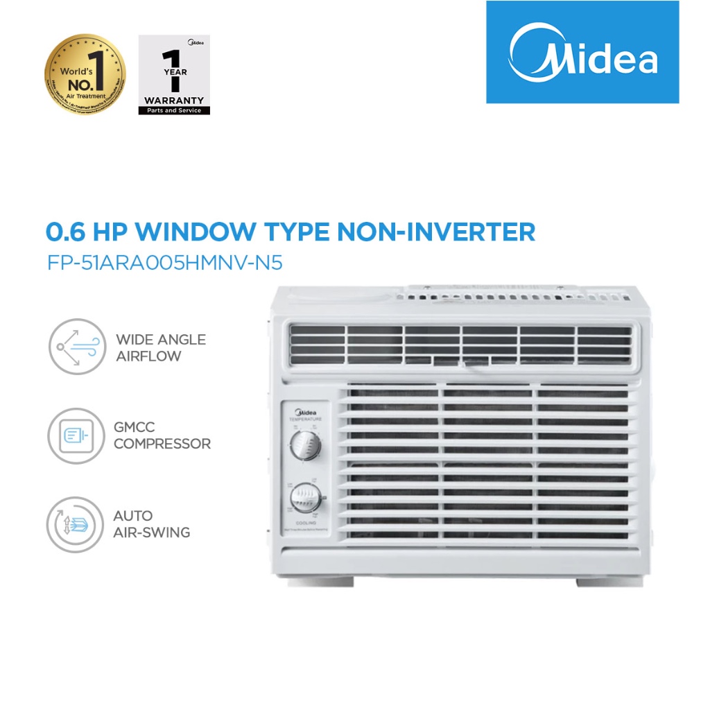 Midea 0.6HP Window Type Manual Air-Conditioner with Prime Guard Hyper Grapfins™