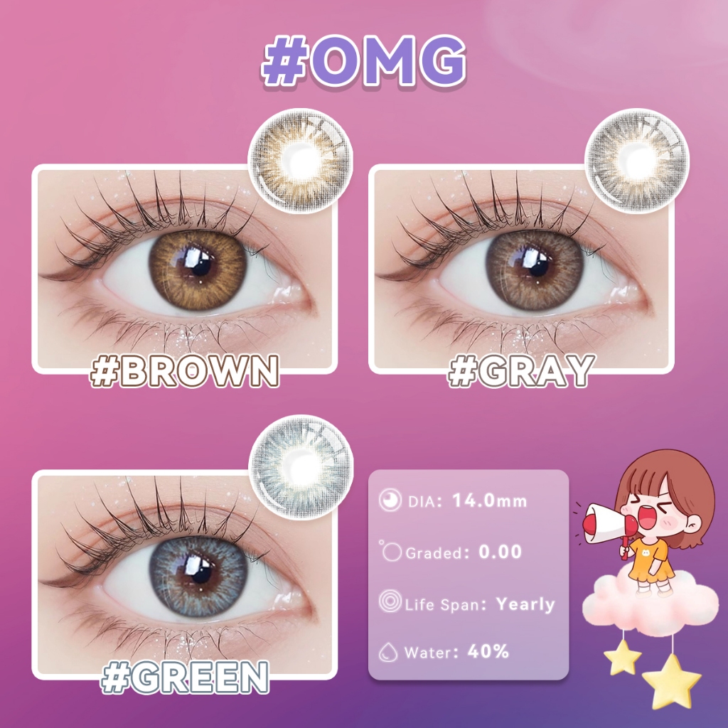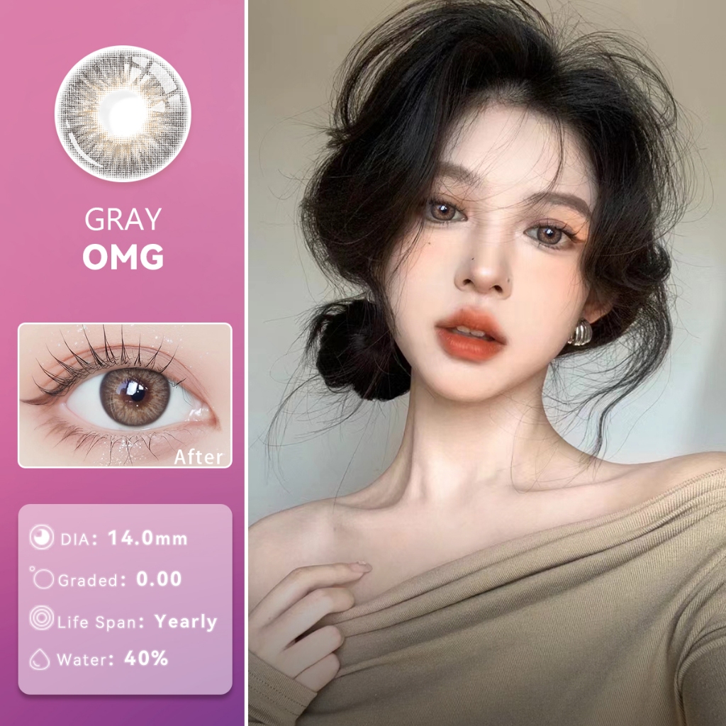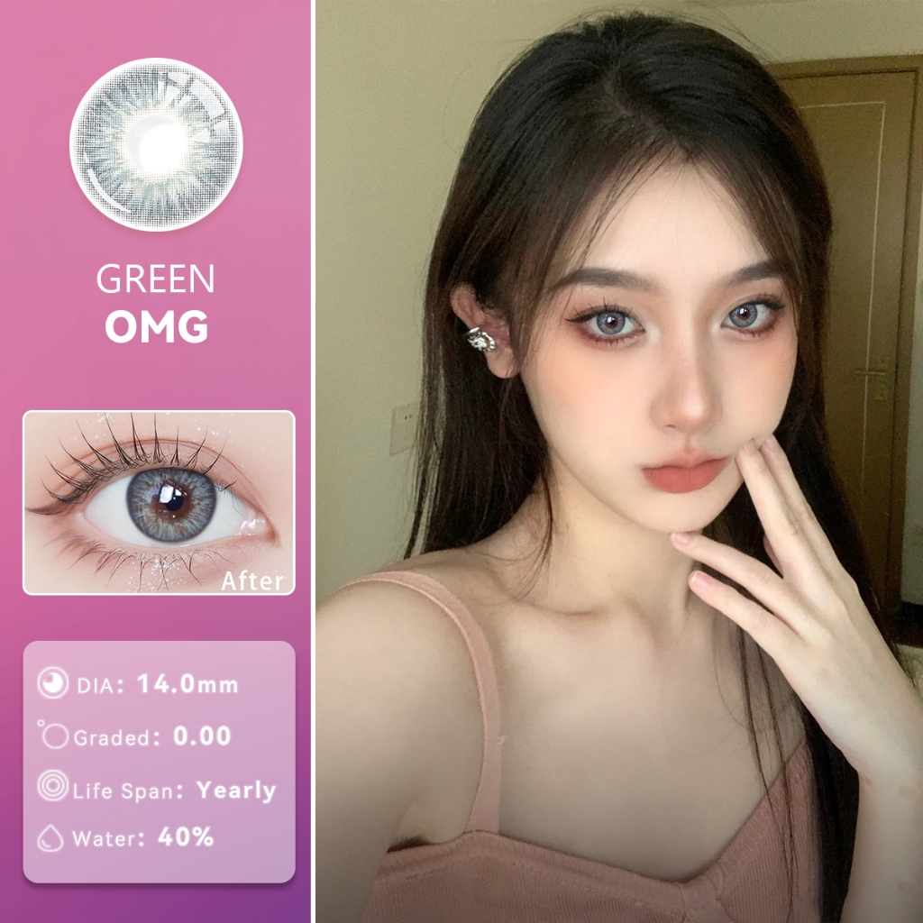 Midroo 1Pair OMG Contact lens Complete Set With Case Graded 0.00 Annually Replace 14.0mm