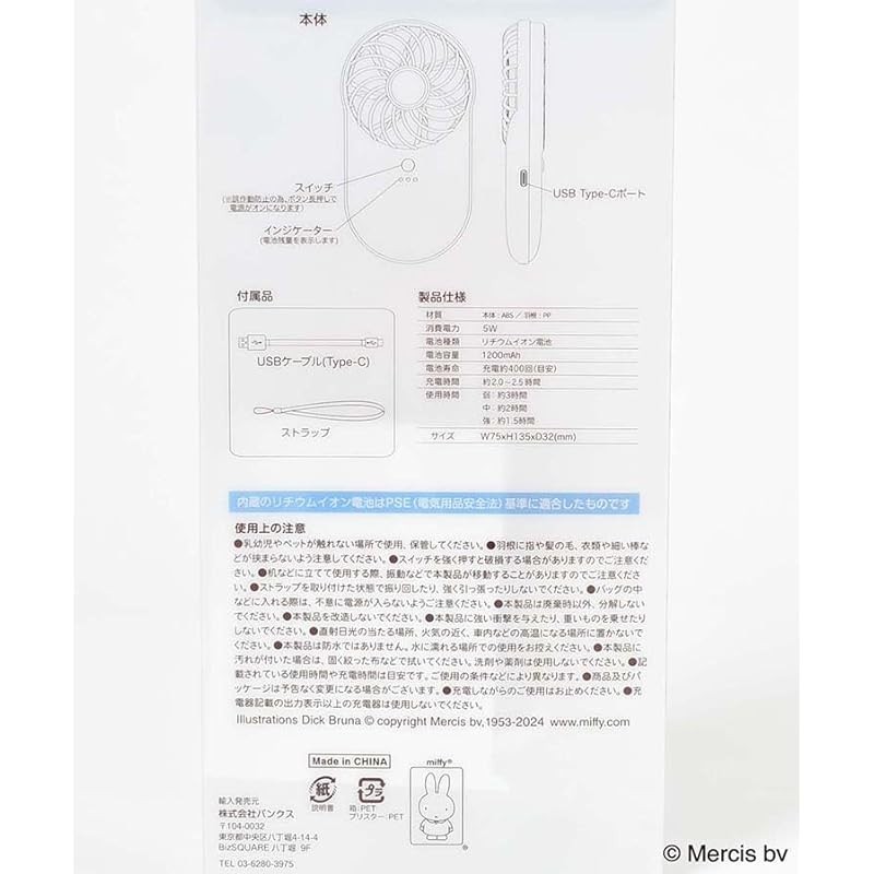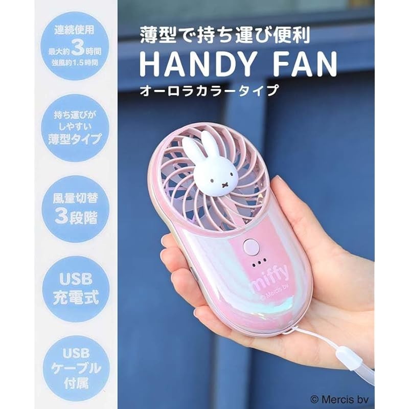 Miffy Aurora Pocketable Handy Fan Handheld Fan Rechargeable Compact (Aurora White)