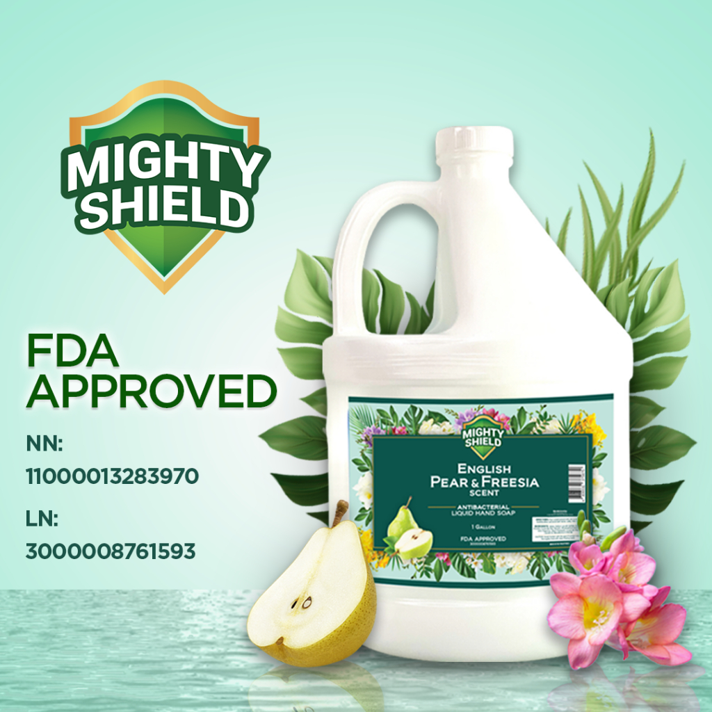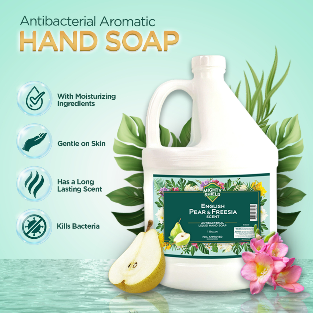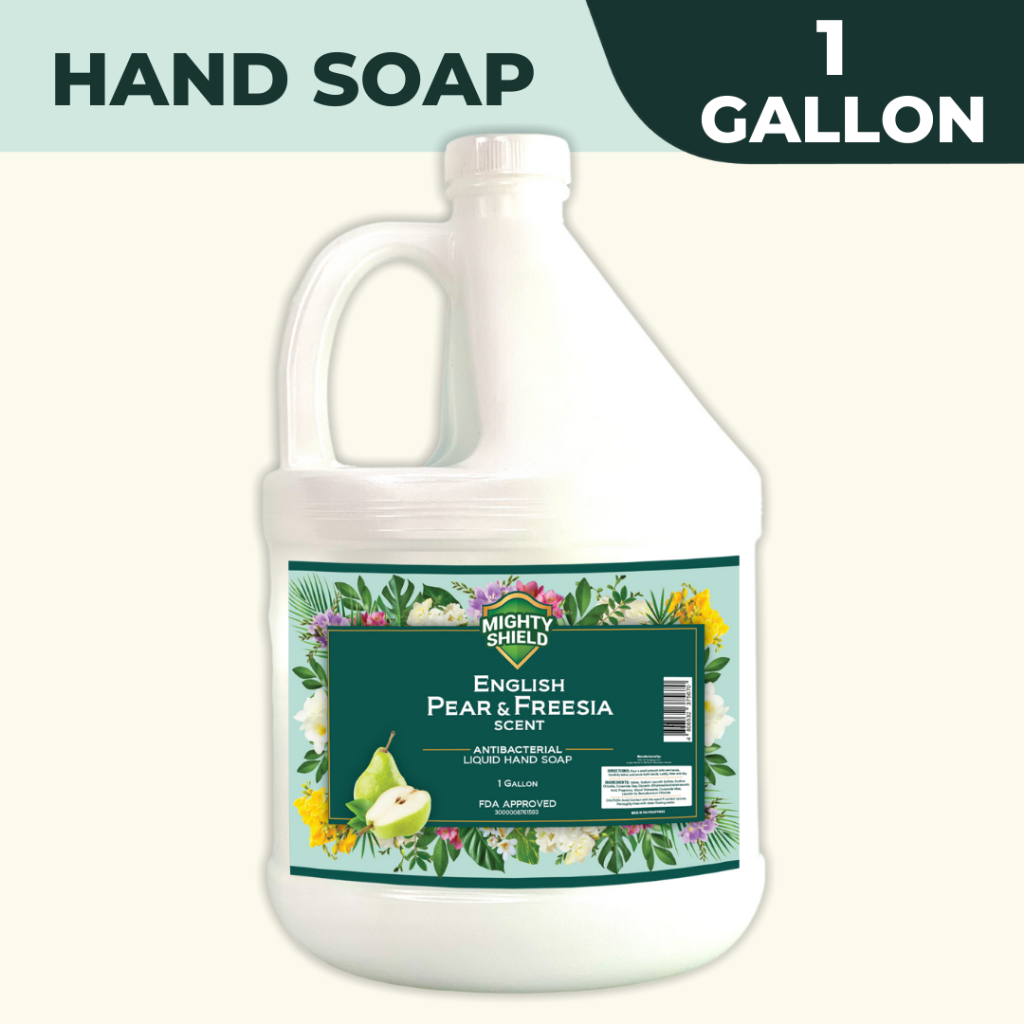 Mighty Shield Antibacterial Liquid Hand Soap - ENGLISH PEAR & FREESIA SCENT 1 GALLON