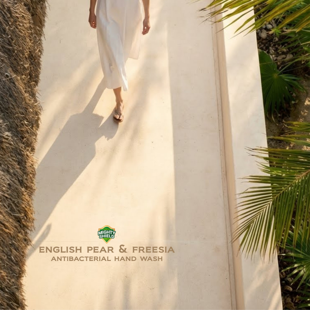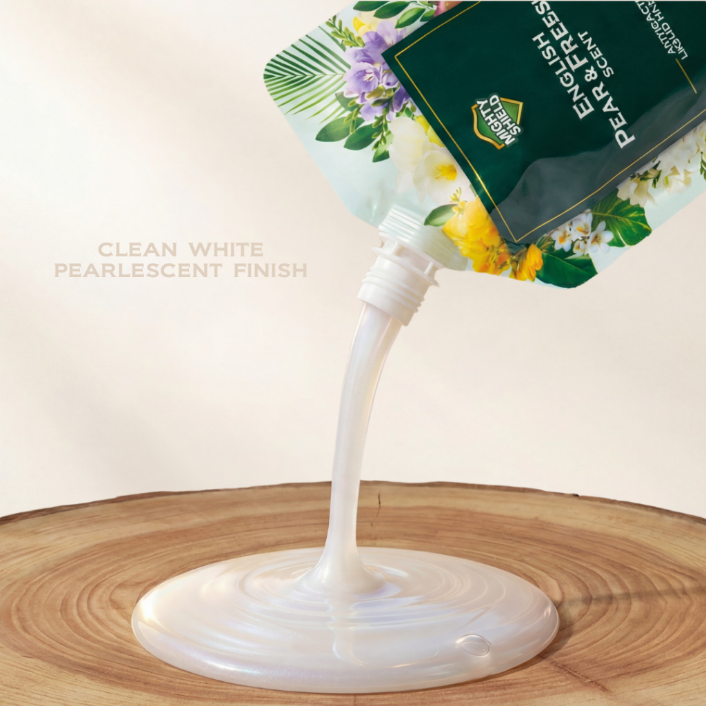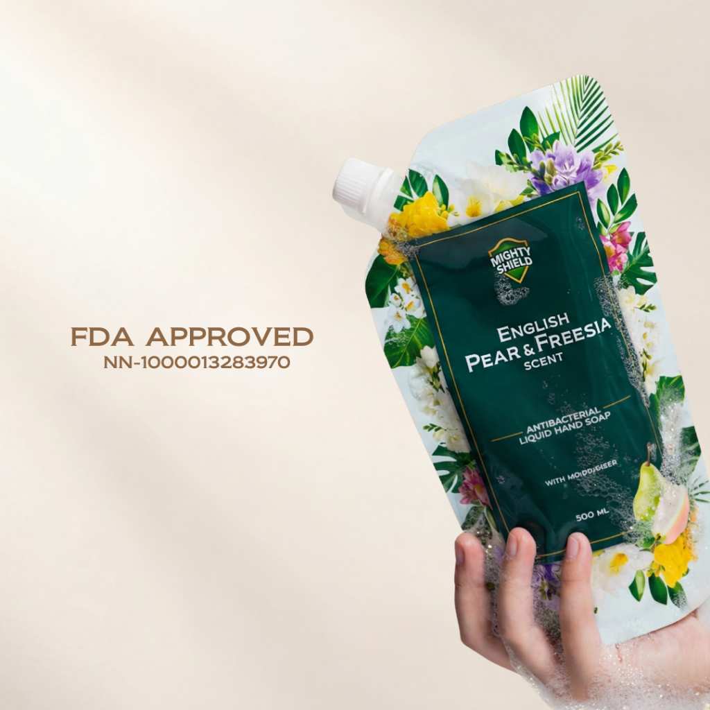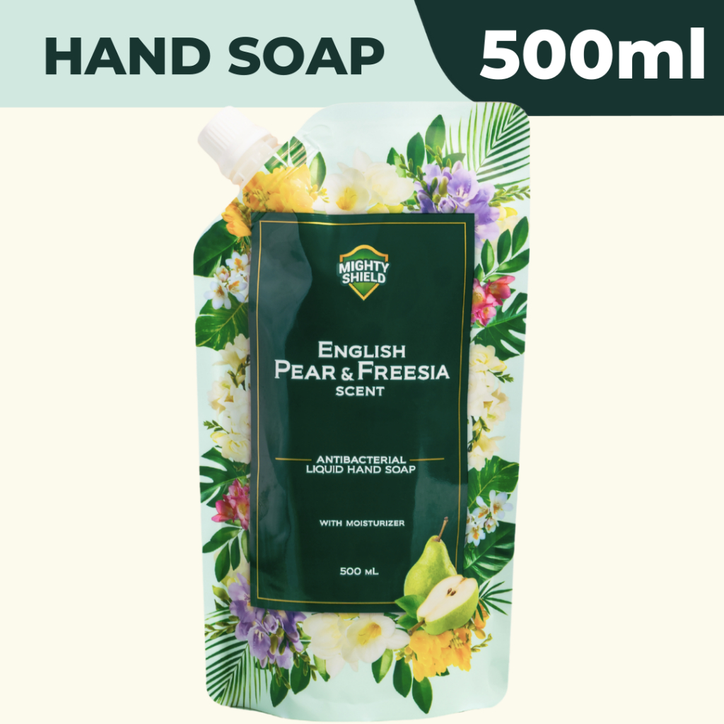 Mighty Shield Antibacterial Liquid Hand Soap - ENGLISH PEAR & FREESIA SCENT 500ML POUCH