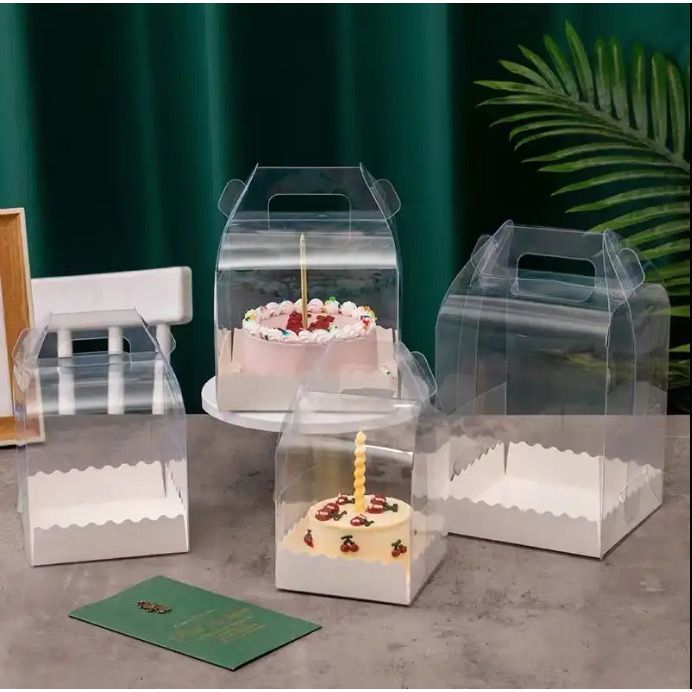 Mika Cake box / mika Tenteng Cake box / Mica Cake handle box bento Cake mini tart box clear.