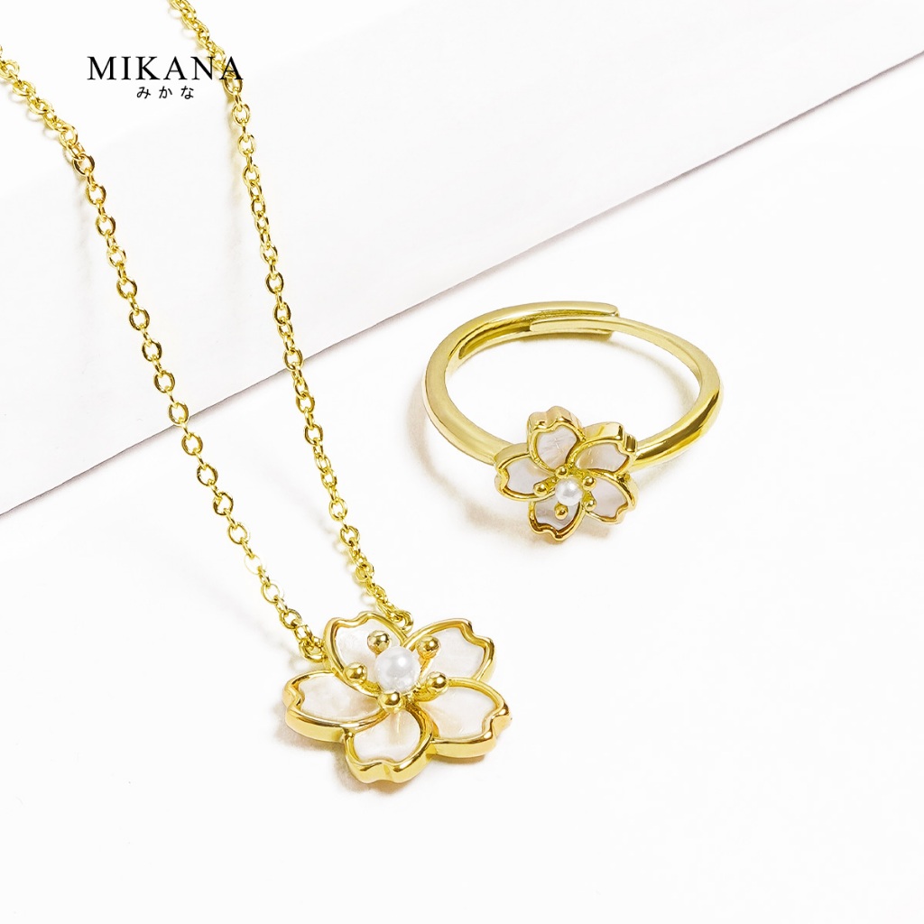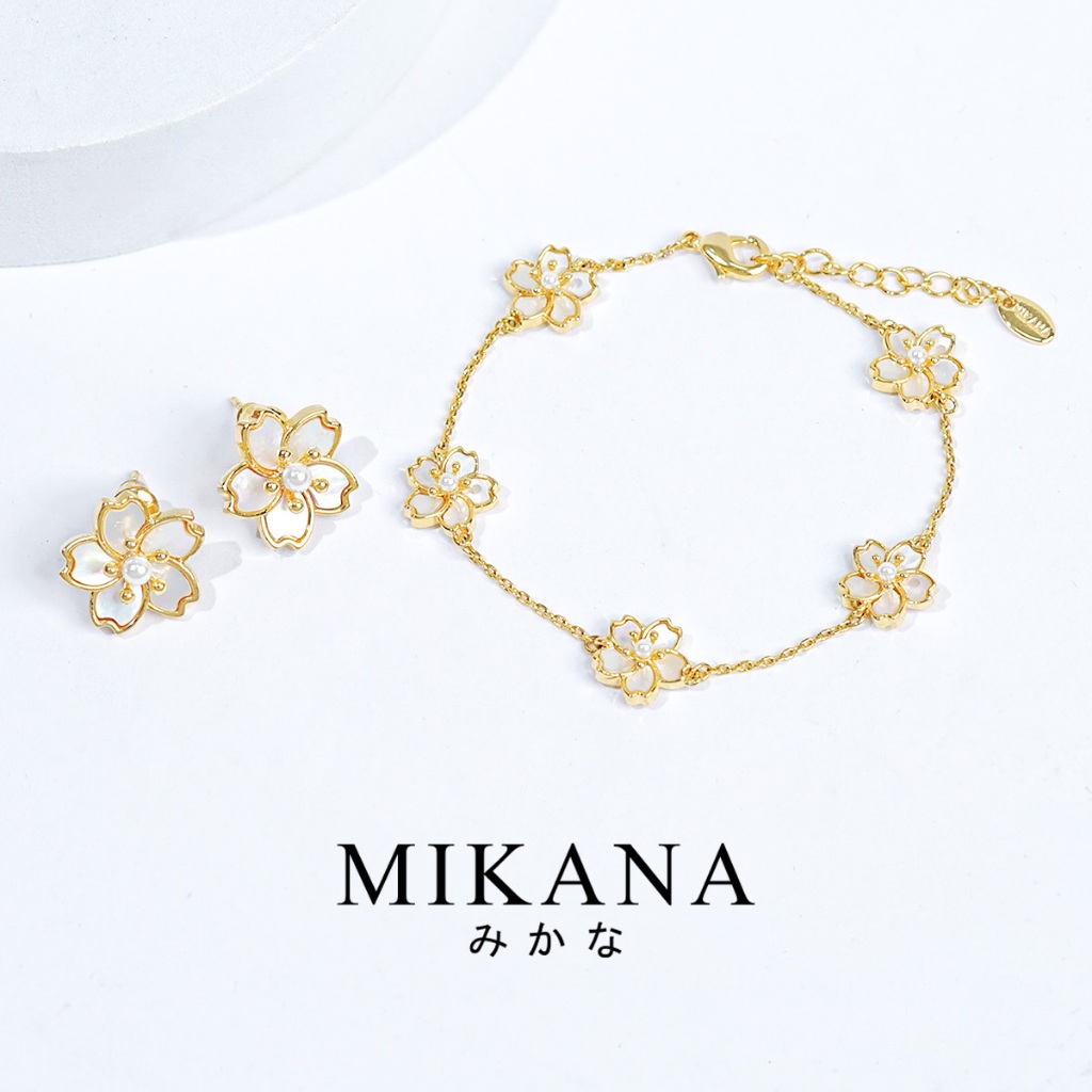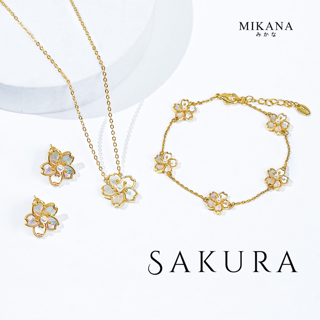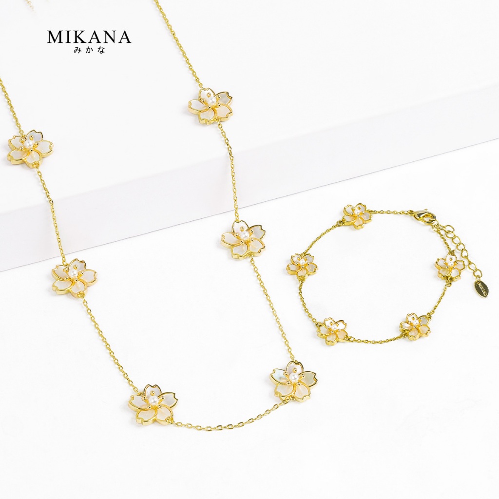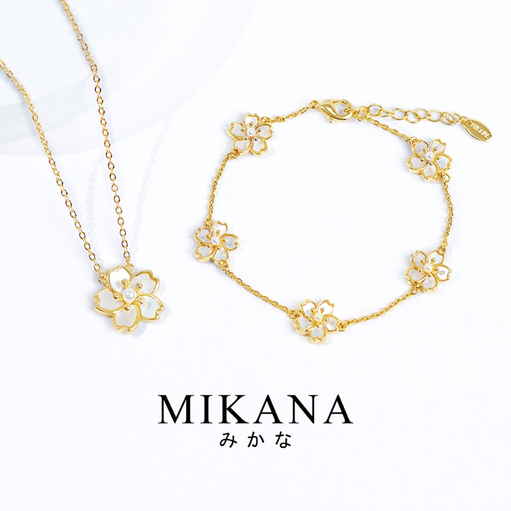 Mikana Gold Plated Sakura Jewelry Set for women flower necklace earring bracelet gift for girlfriend