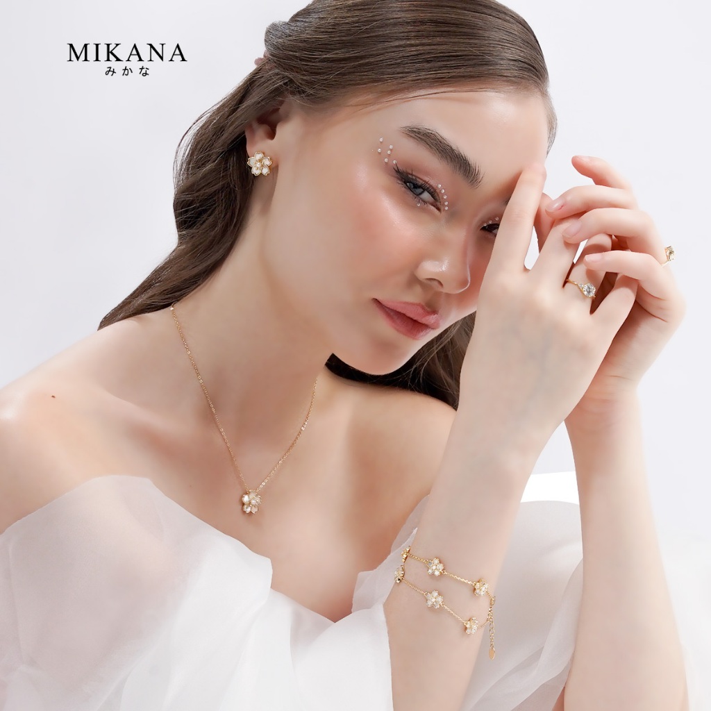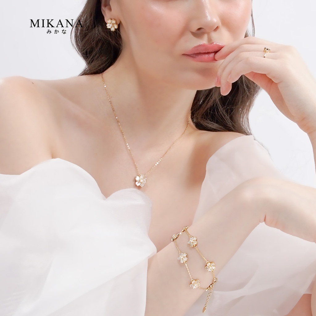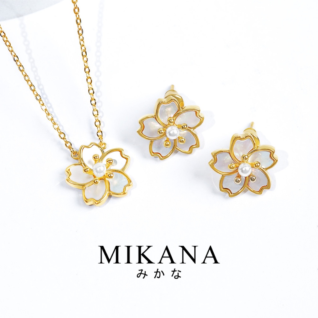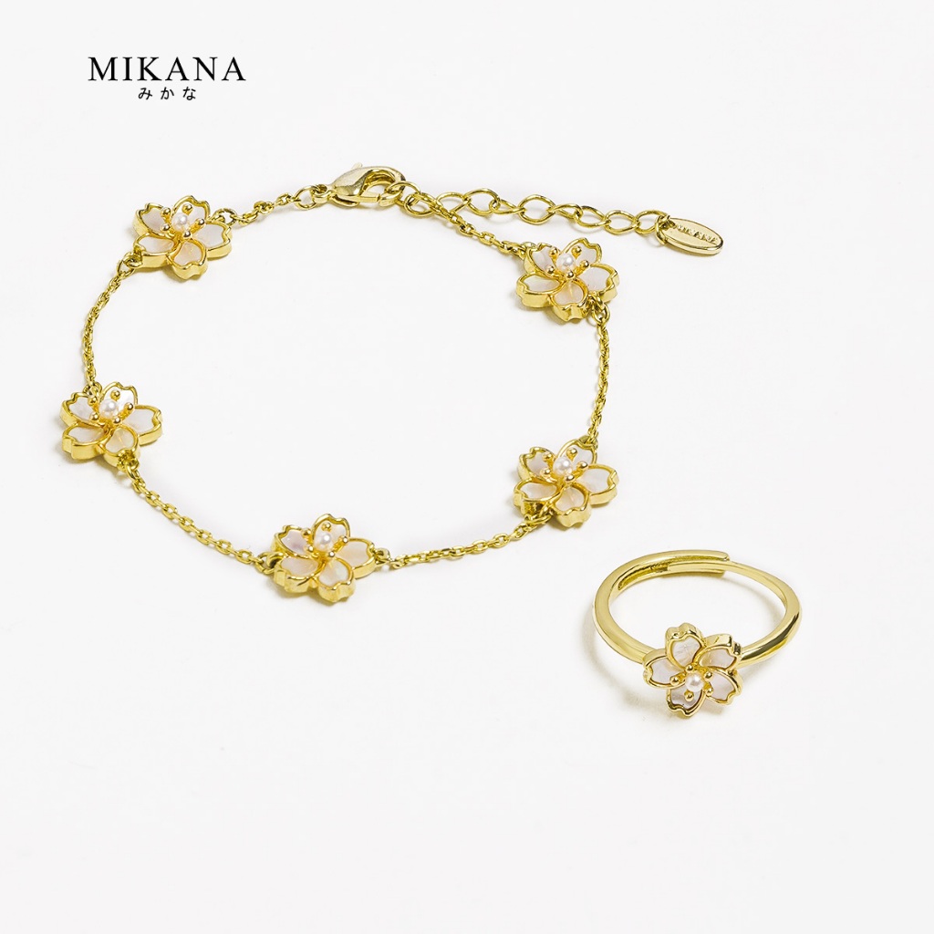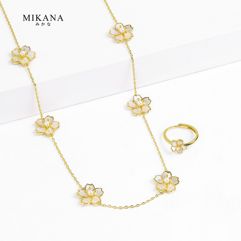 Mikana Gold Plated Sakura Jewelry Set for women flower necklace earring bracelet gift for girlfriend