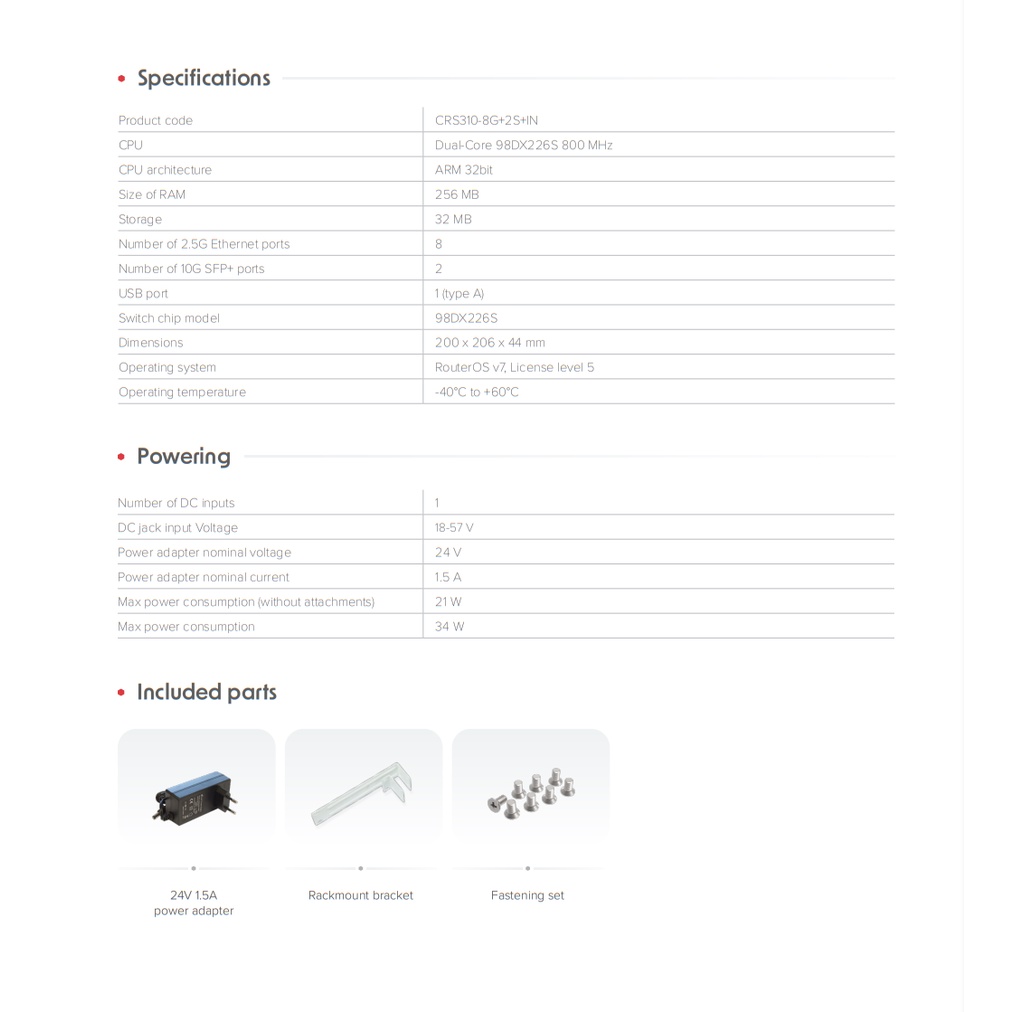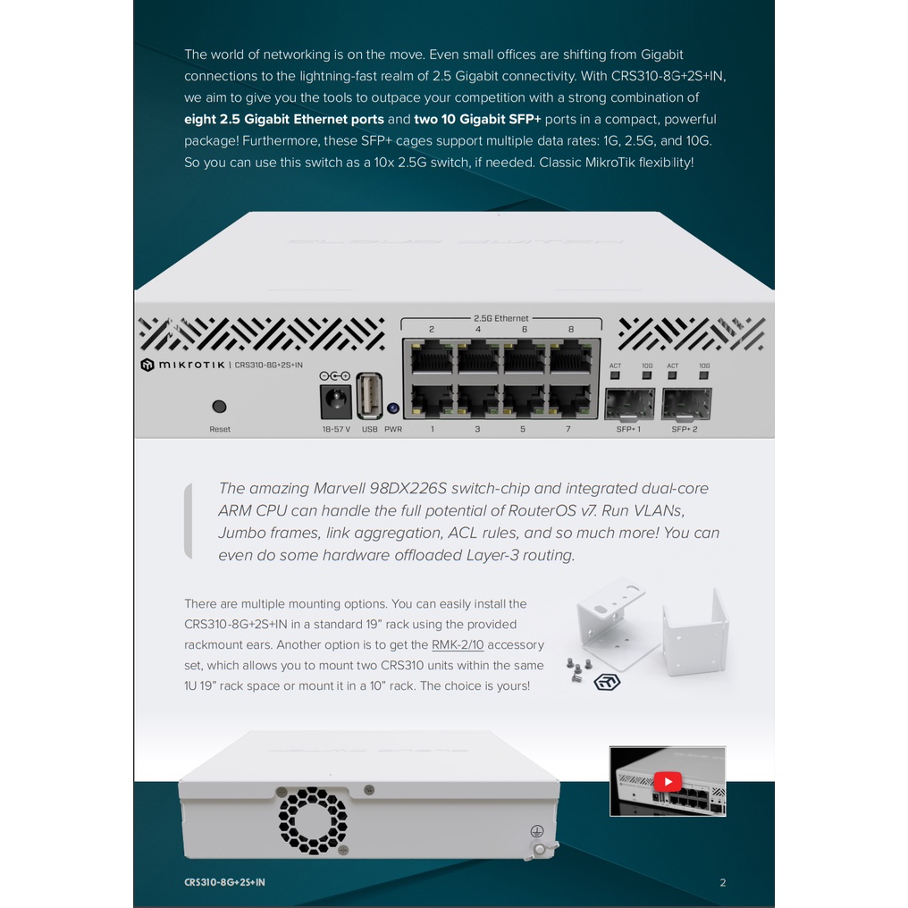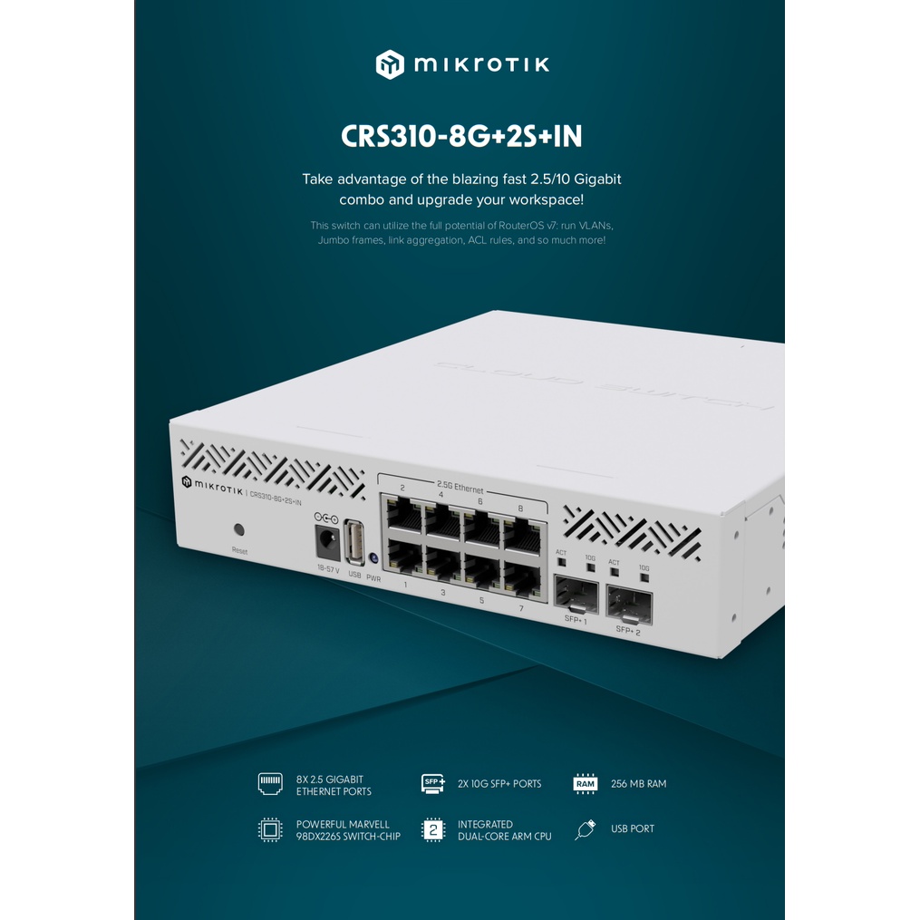 MikroTik CRS310-8G+2S+IN - Managed Switch (8) 2.5 Gigabit Ethernet Ports, (2) 1G/2.5G/10G SFP+ Port