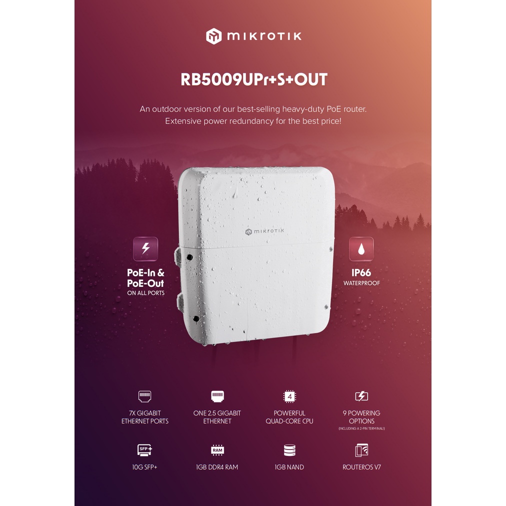 MikroTik RB5009UPr+S+OUT - Outdoor POE Router w/ 7x 1G ports, 1x 2.5G port, 10G SFP+ - RB5009