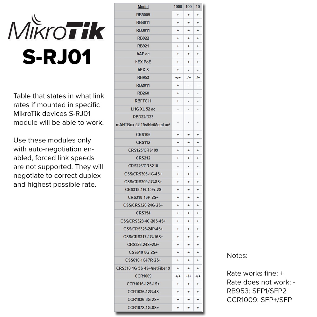 MikroTik S-RJ01 - RJ45 to 1G SFP Gigabit Copper Module - Connector Converter