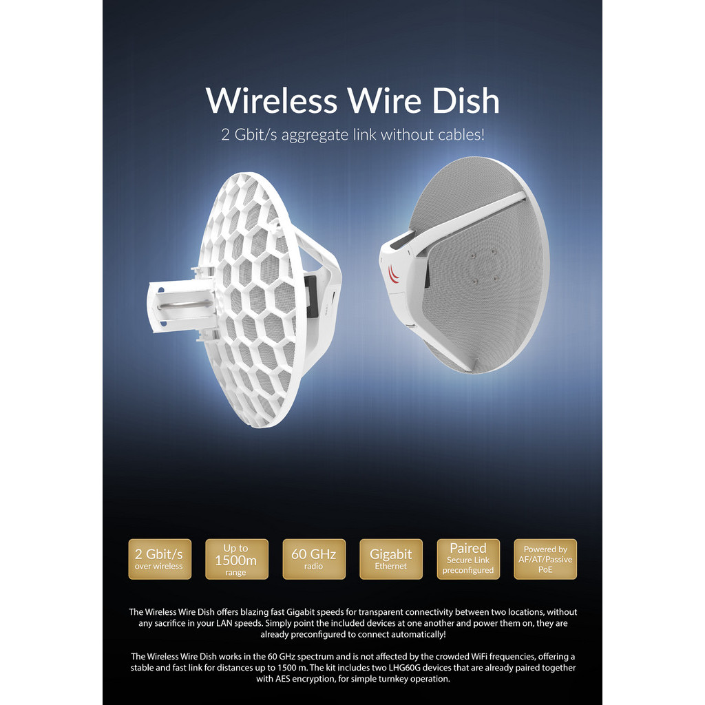 MikroTik Wireless Wire Dish - 2Gbps 60Ghz Short-ranged PTP Antenna Pair | 2 pcs. Point to Point Dish