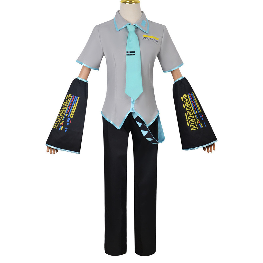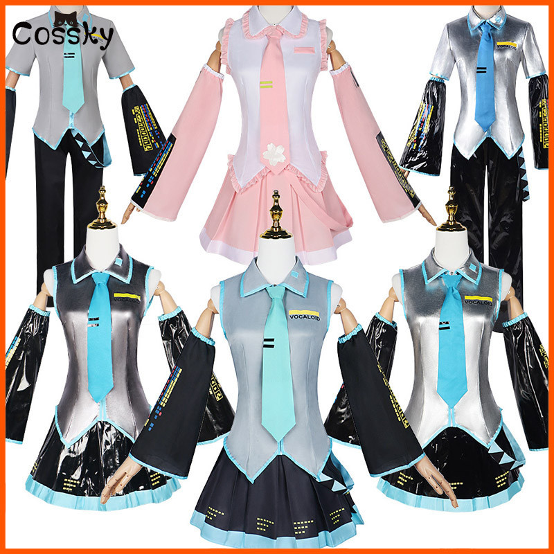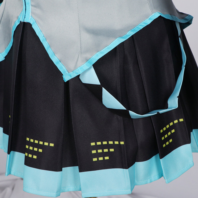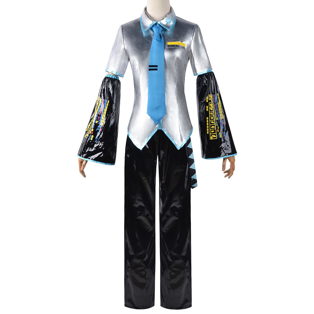 Miku Cosplay Full Set Silver Grey Patent Leather Fabric Suit Miku Cosplay Shoes Headwear Costume Outfit JK Uniform Cosplay
