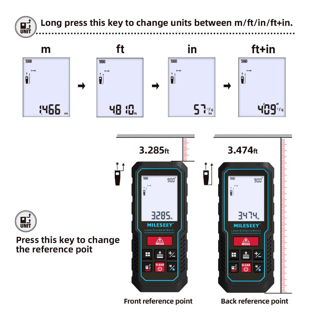 Mileseey 100M laser distance meter Digital LCD 100 Meter range finder Laser Meteran Distance Meter Laser Rangefinders