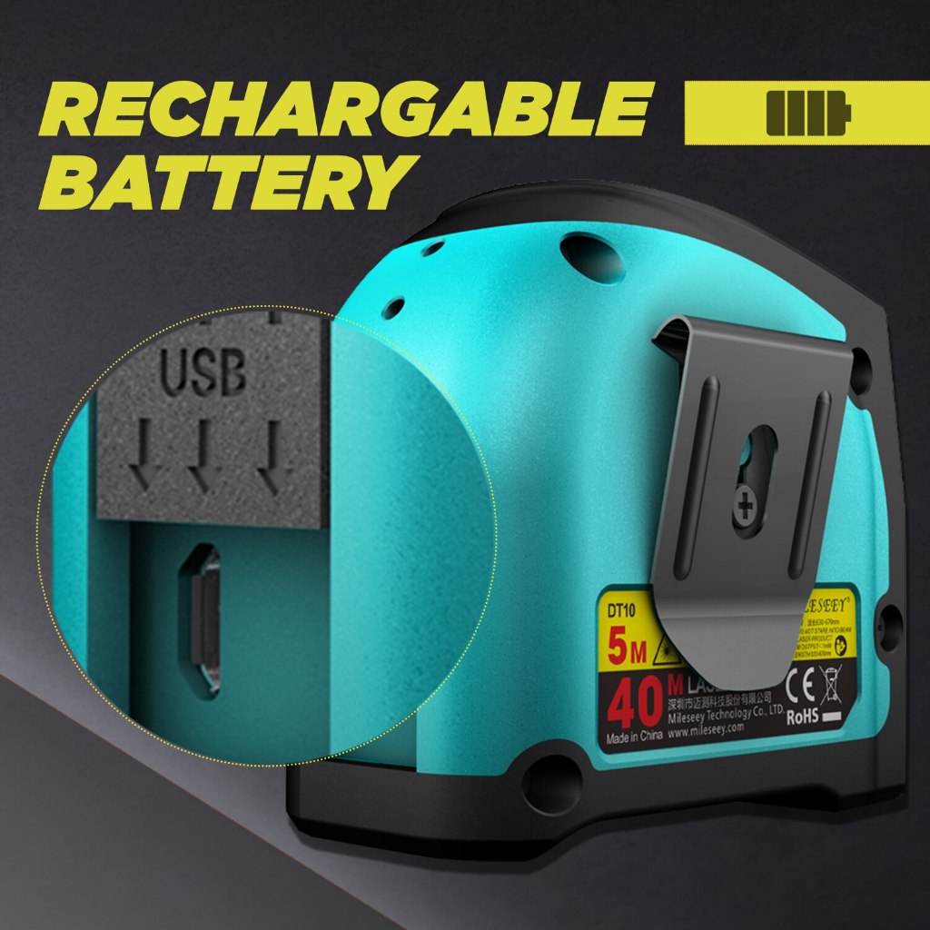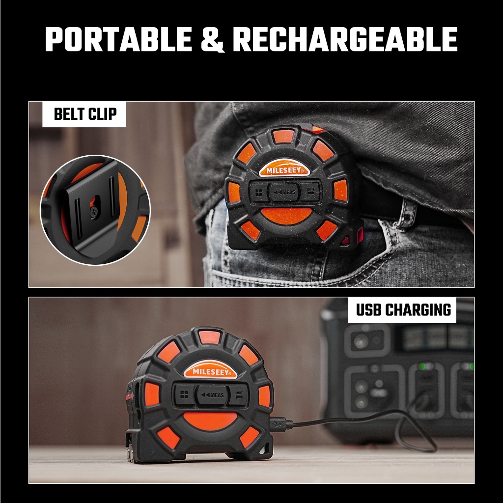 Mileseey DT10 Laser Telescopic Tape Measure 2-in-1 Digital Measure Rangefinder with LCD Digital Display,Built-in Rechargeable Battery,With Clip For Carry