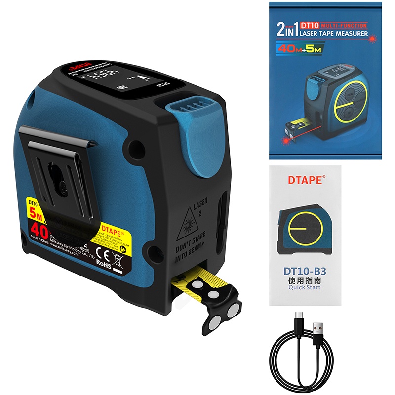 Mileseey & Dtape DT10 2 in 1 Laser Distance Meter 40m Portable Digital Rangefinder 5m Scalable inch/meter Tape Measure For Meas