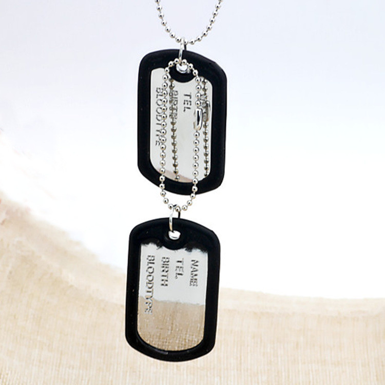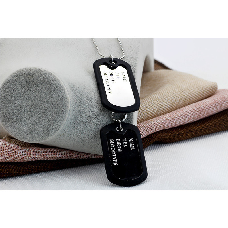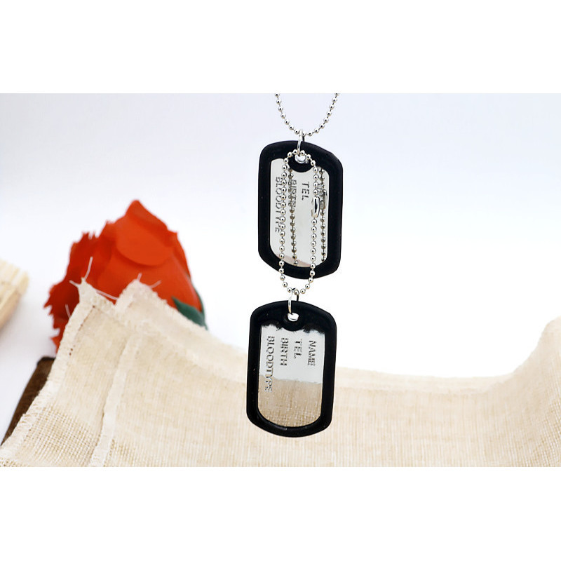 Military Army Style Black 2 Dog Tags Chain Mens Pendant Necklace can't write words on tag