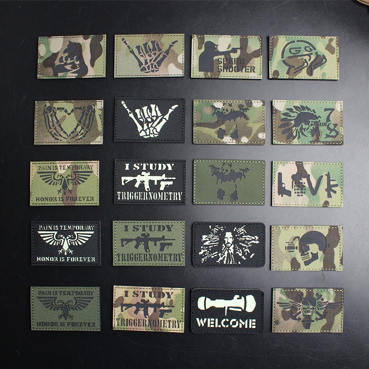 Military Fan Series Laser Cutting Reflective Velcro Badge Luminous Armband Rectangular 8x 5cm Backpack Badge Military Fan Morale Badge