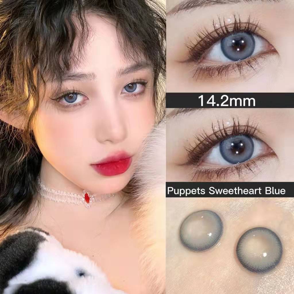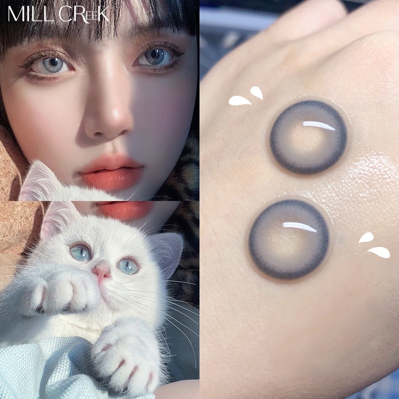 Mill Creek 2PCS Cosmetic Contact Lenses Ragdoll Cat Same Paragraph Blue Large Diameter With Graded Degree Contact Lenses 14.2mm Yearly Use blue contact lens contact lens