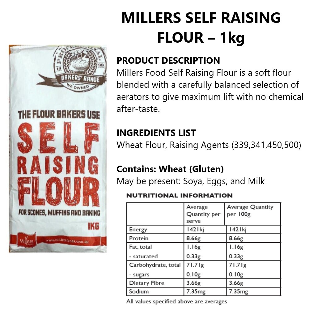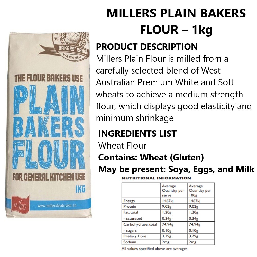 Miller Food Bakers' Range Flour Self Raising Flour / Strong Bakers Flour / Plain Bakers Flour (Packet*1kg)