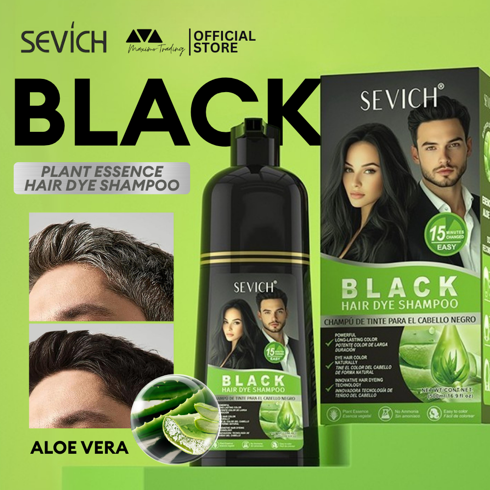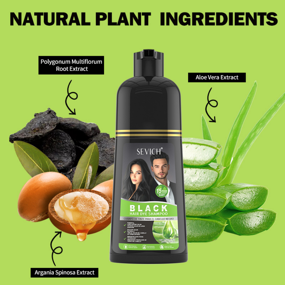 Sevich Black Hair Dye Shampoo Aloe Vera Plant-Based 3-in-1 Herbal Hair Color Shampoo & Conditioner