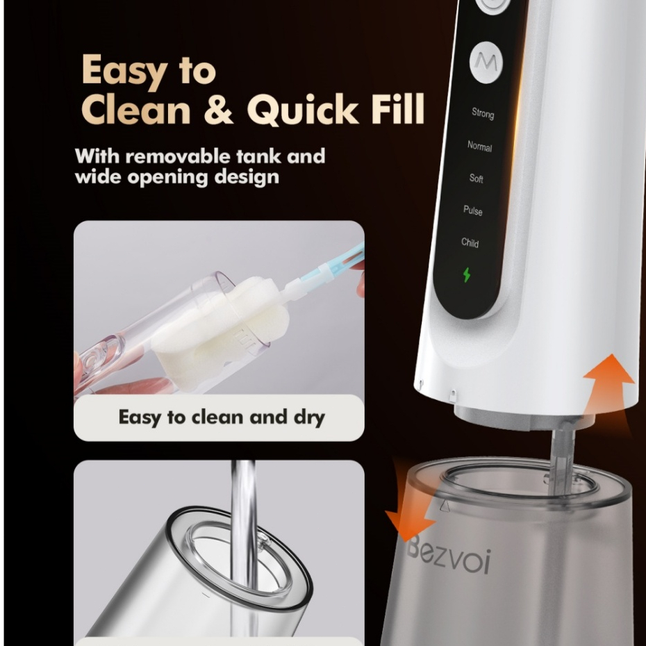 Oral Irrigator 360° thorough Teeth Cleaning Efficient Tartar Removal (5 Mode+4 Nozzle) Toothbrush IPX7 Waterproof Bezvoi Y211 Water Flosser For Braces User