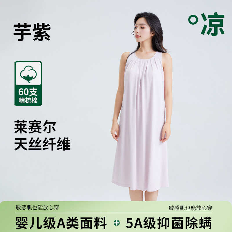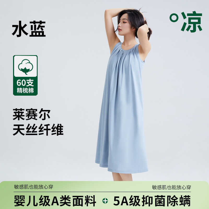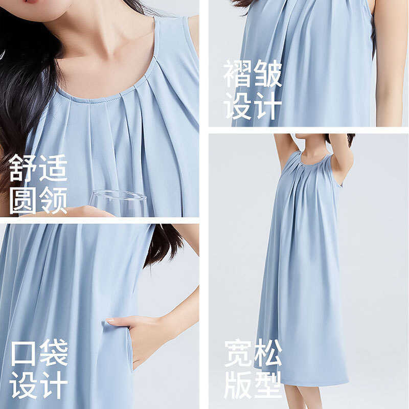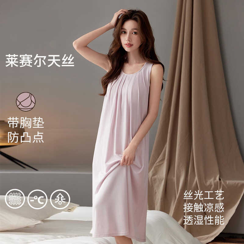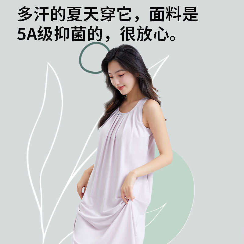 5A Antibacterial Summer Nightgown with Chest Pads for Women, Sleeveless Anti-Exposure Tencel Cotton