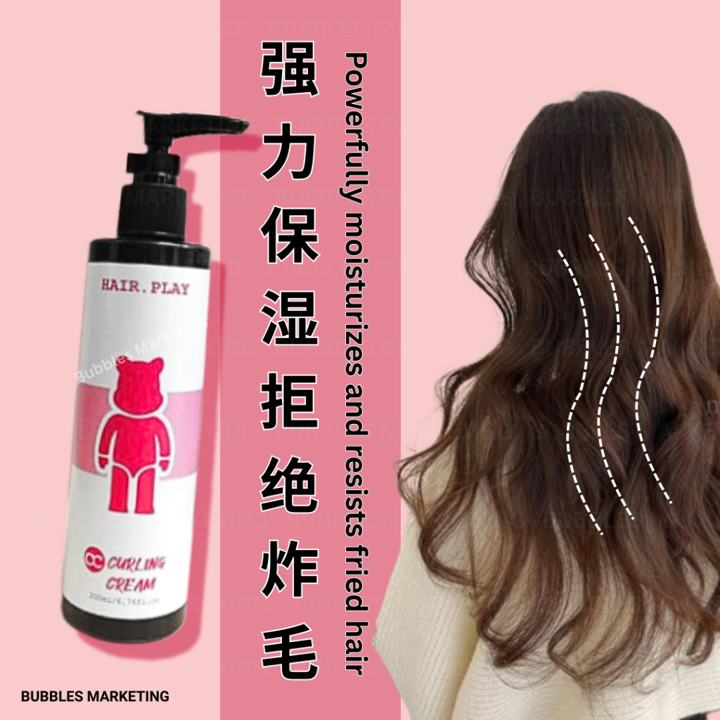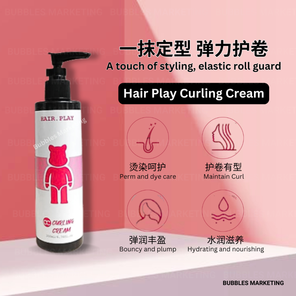 Hair Play Curling Cream 200ml Hair Curl Cream Mosturizing Elastin Volumizing Soft Hold Krim Keriting 蓬松定型弹力卷发霜保湿卷发造型