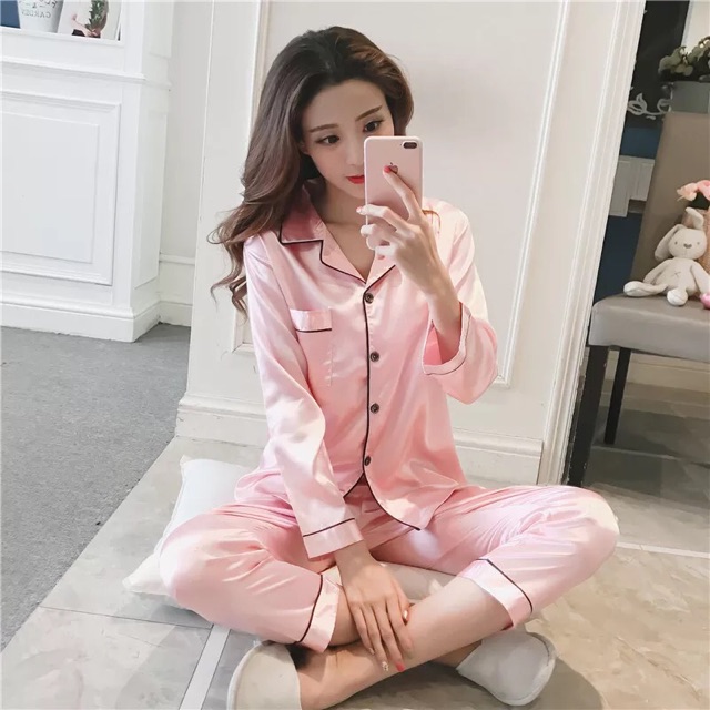 WAIKIKI FASHION #P002 Fashion High Quality Korean Silk Long Sleeve With Pants Pajama/Home Wear