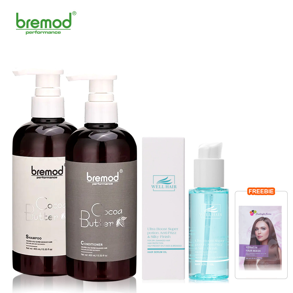 Bremod Cocoa Hair Conditioner Shampoo 400ml & Hair Serum Washing Care Scalp Damage Frizzy Dry Hair