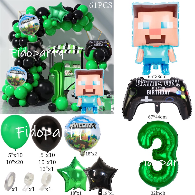 Minecraft Balloon Garland Arch Kit 32inch Green Number Balloons Black Green Latex For Boys Birthday Party Decorations