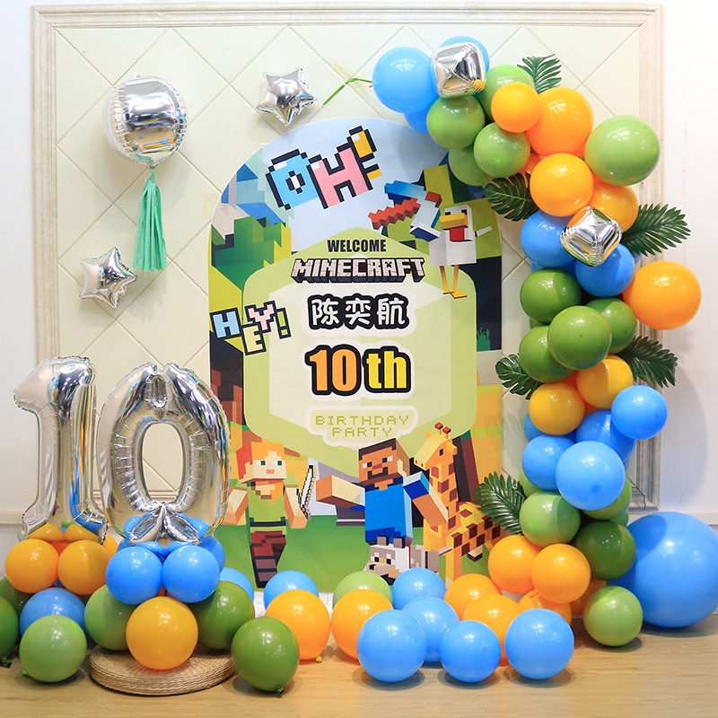 Minecraft Balloon Steven Foil Balloon 18"Roundball 32"Green Number Cake Topper Birthday Banner Baby Shower Party Needs