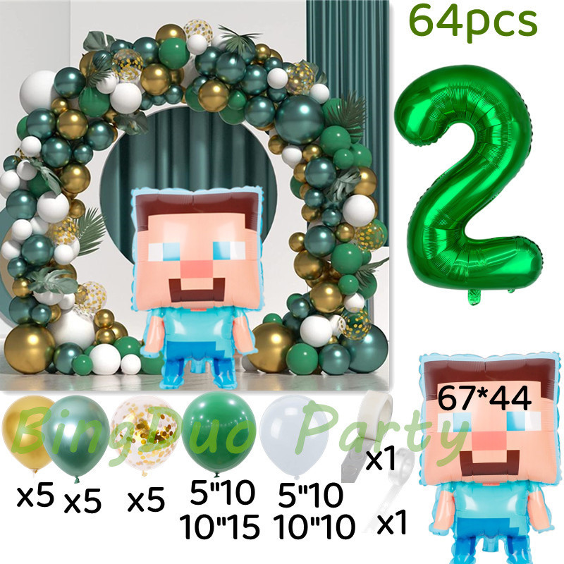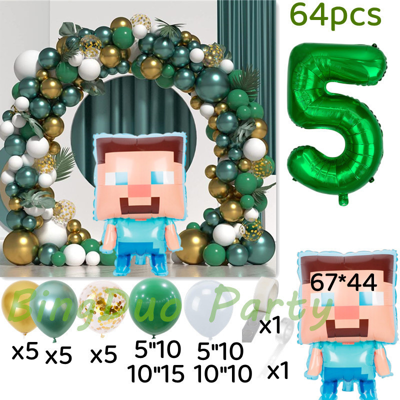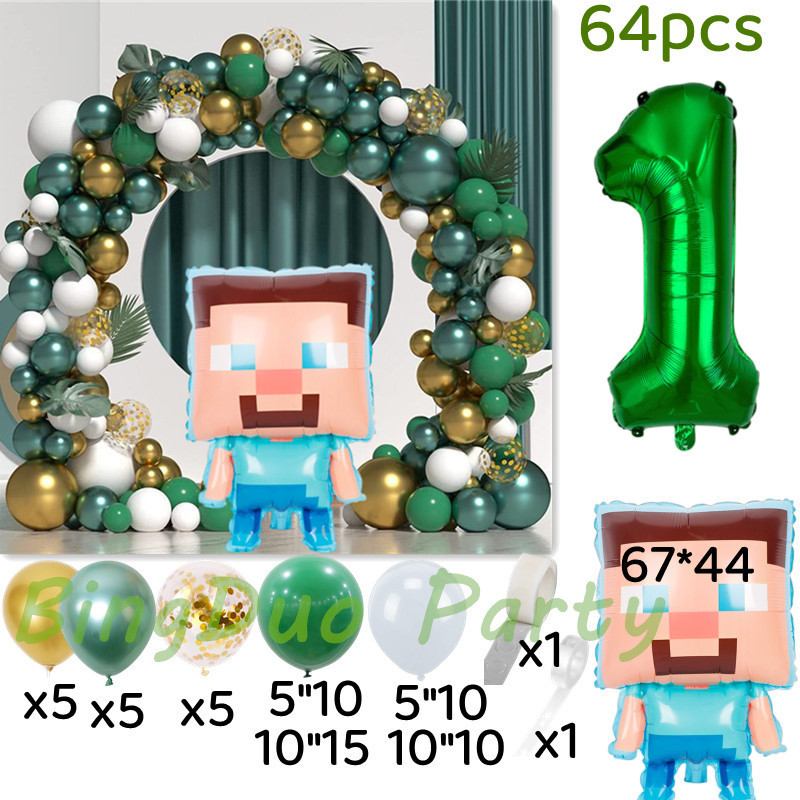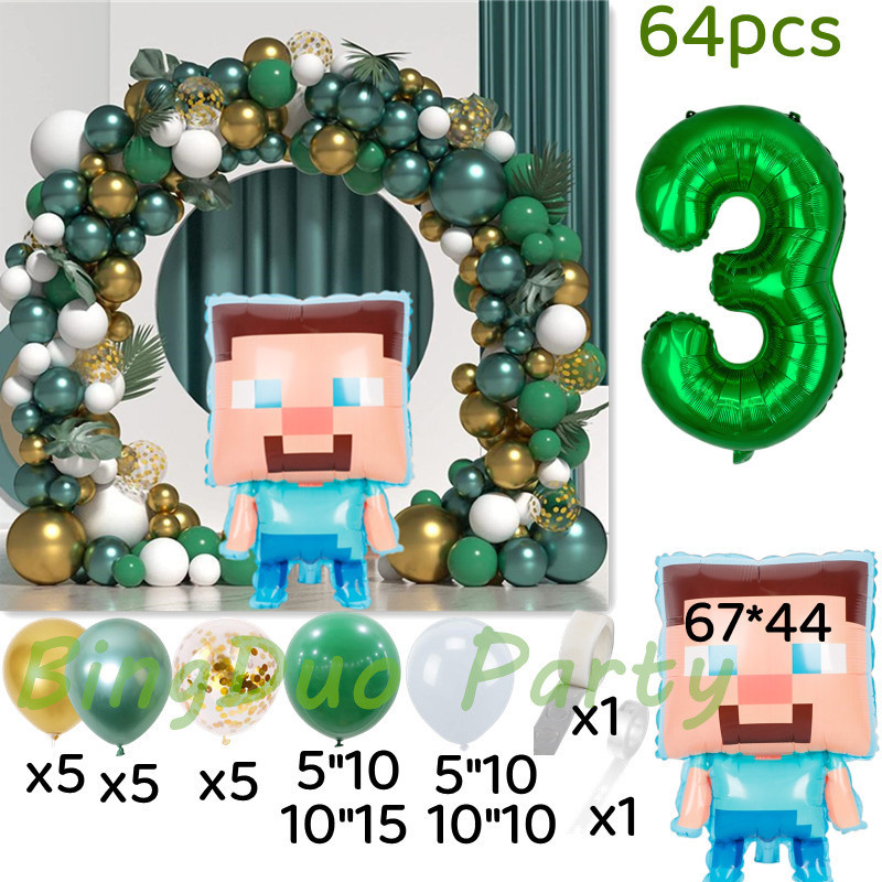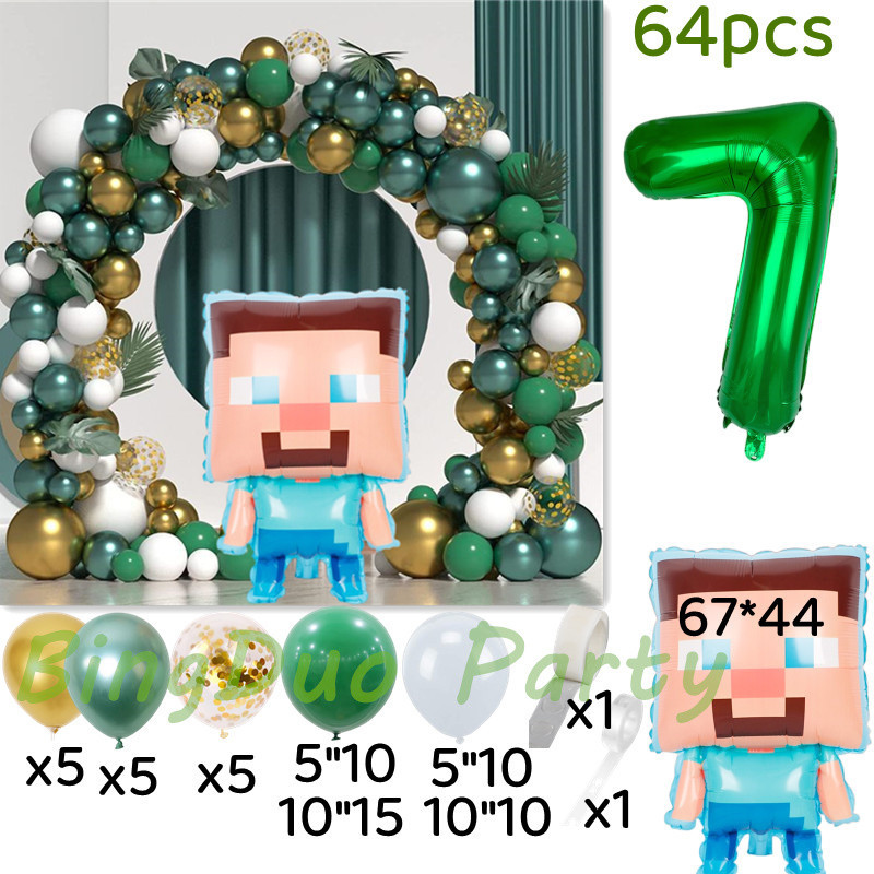 Minecraft Birthday Party Green White Gold Balloon Steven Balloon 32inch Green Number Balloon Set Decoration For Birthday