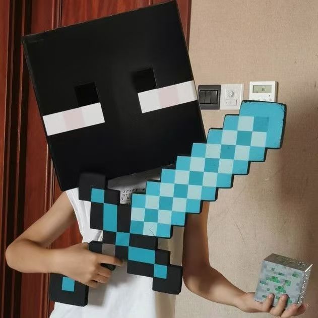Minecraft Cardboard Head Cover Box Steve Creeper Enderman Mask Cosplay Costume