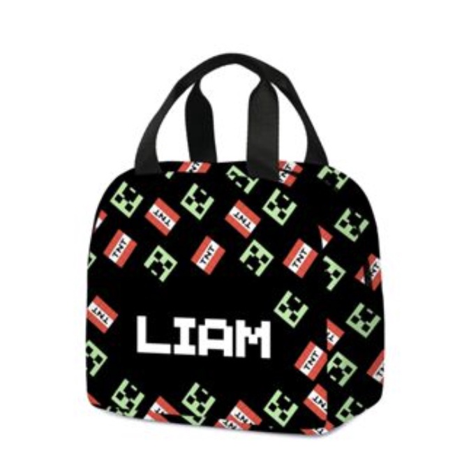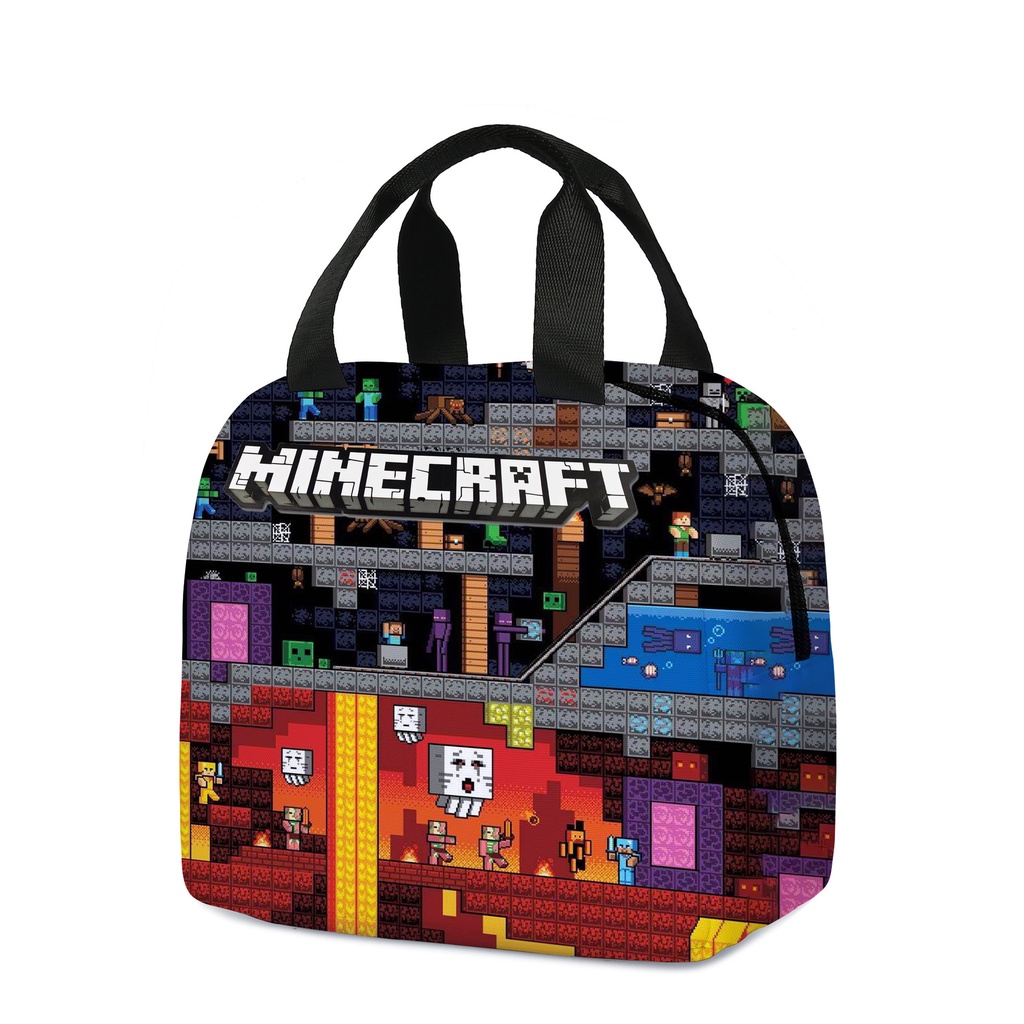 Minecraft Cartoon Portable Insulated Lunch Bag Ladies Kids Food Storage Tote Bag Travel Picnic Bag Insulated Refrigerated Lunch Box