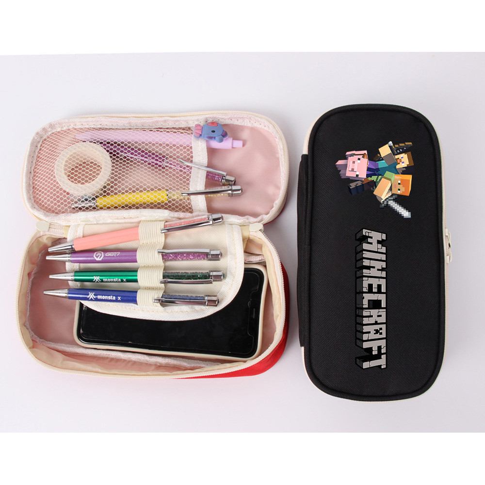 Minecraft MINECRAFT Red Black Pencil Case 2024 New Style Anime Merchandise Male Female Student Canvas Large Capacity Stationery Bag