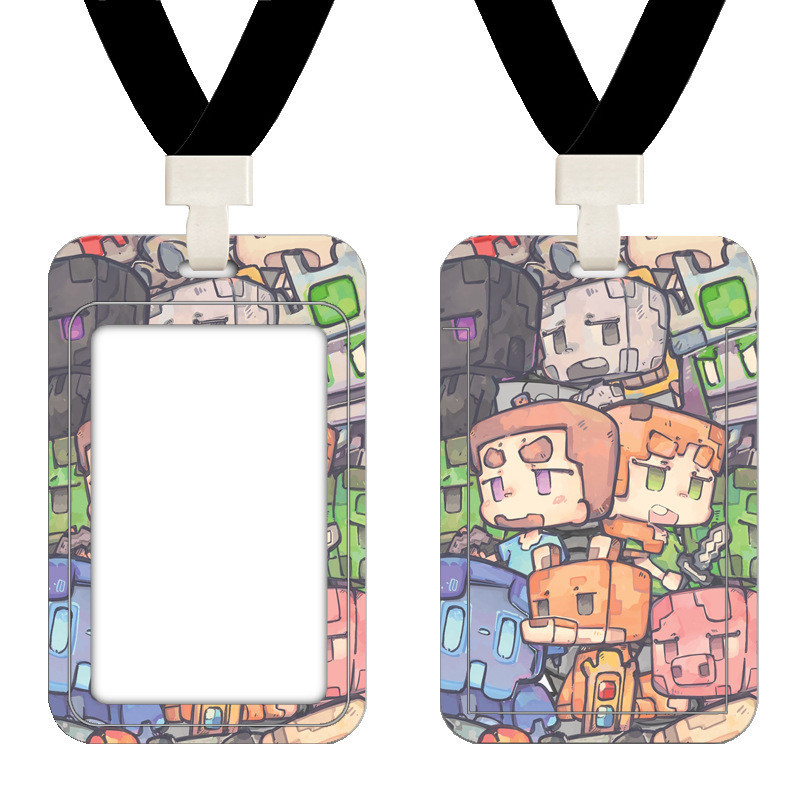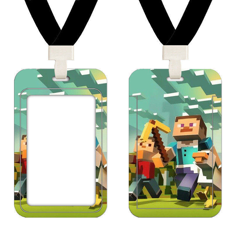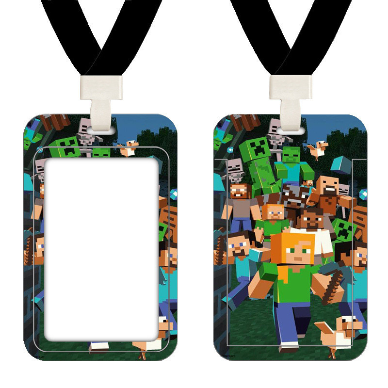 Minecraft My World Creeper Campus Card Holder Student Meal Card Access Control Bus Subway Certificate Holder with Lanyard