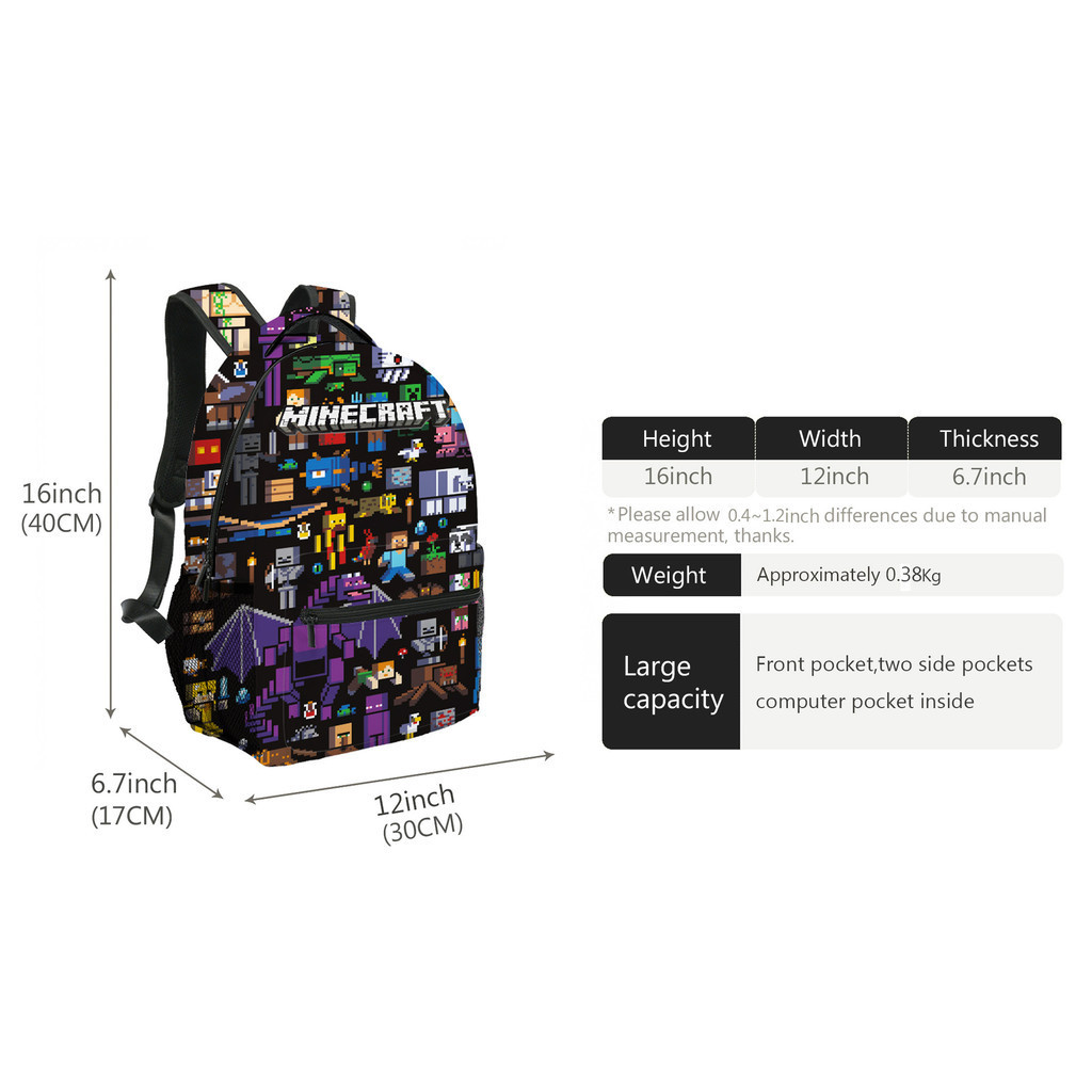 Minecraft School Bag Backpack Children Back to School For Students Large Capacity School Bags